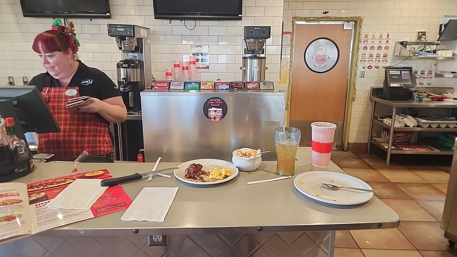 For breakfast, I indulged in the T-Bone Steak breakfast with eggs and hash browns, while my wife opted for the T-Bone Steak dinner. Having dined at various Denny's locations across the country during our travels, I can confidently say that the steak we ordered surpassed all expectations. Cooked to perfection and expertly seasoned, it was undoubtedly one of the best steaks we've ever tasted.