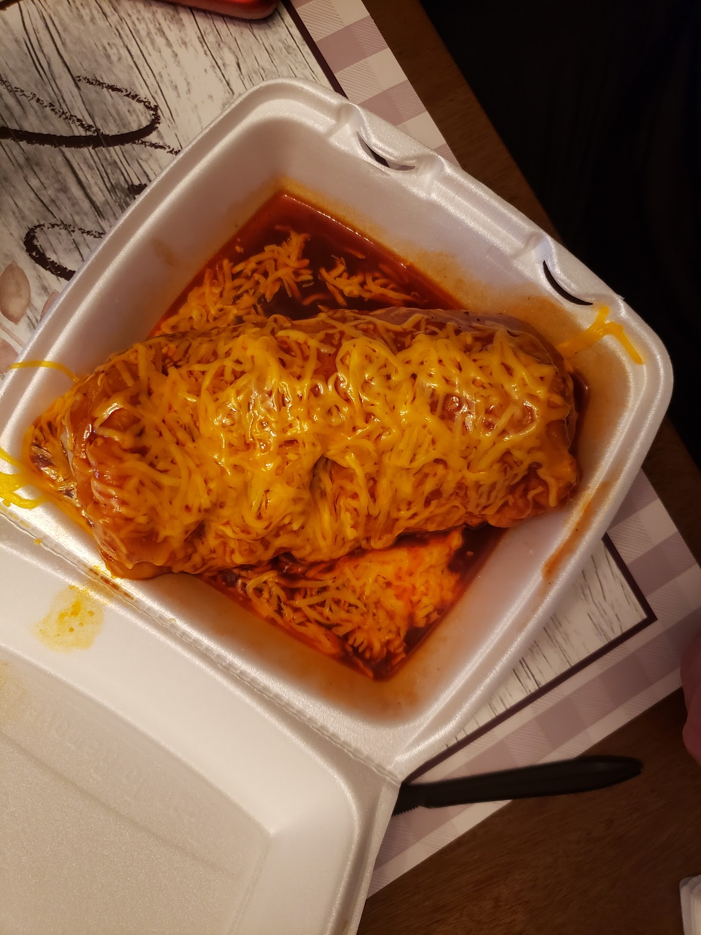 Read moreStopped here and went in to order so I could also use the restroom. It's a little over the half way point on my 4 1/2 hrs drive. Not being familiar with the menu since I've never been here before, I discussed with the cashier what I wanted on a burrito. She said she would add cheese and lettuce as I requested on an asada burrito. The receipt also indicated asada burrito. I left and headed back onto the interstate. After getting on the interstate, I started to eat and immediately discovered that I received something completely different. I got a chicken burrito that had cheese (at least that was right) and French fries. Completely different than what I ordered. Thankfully I also got a quesadilla since the butmrrito was horrible and went uneaten. I would've gone back be by the time I realized, I would've had to continue miles ahead to get to the next offramp and go all the way back. Seriously, a completely different burrito. How hard is it to made a burrito with the correct meat. And French fries on a burrito, who the heck does that! Should've realized when there was only 1 table in the entire place occupied and no drive thru activity. Will not...