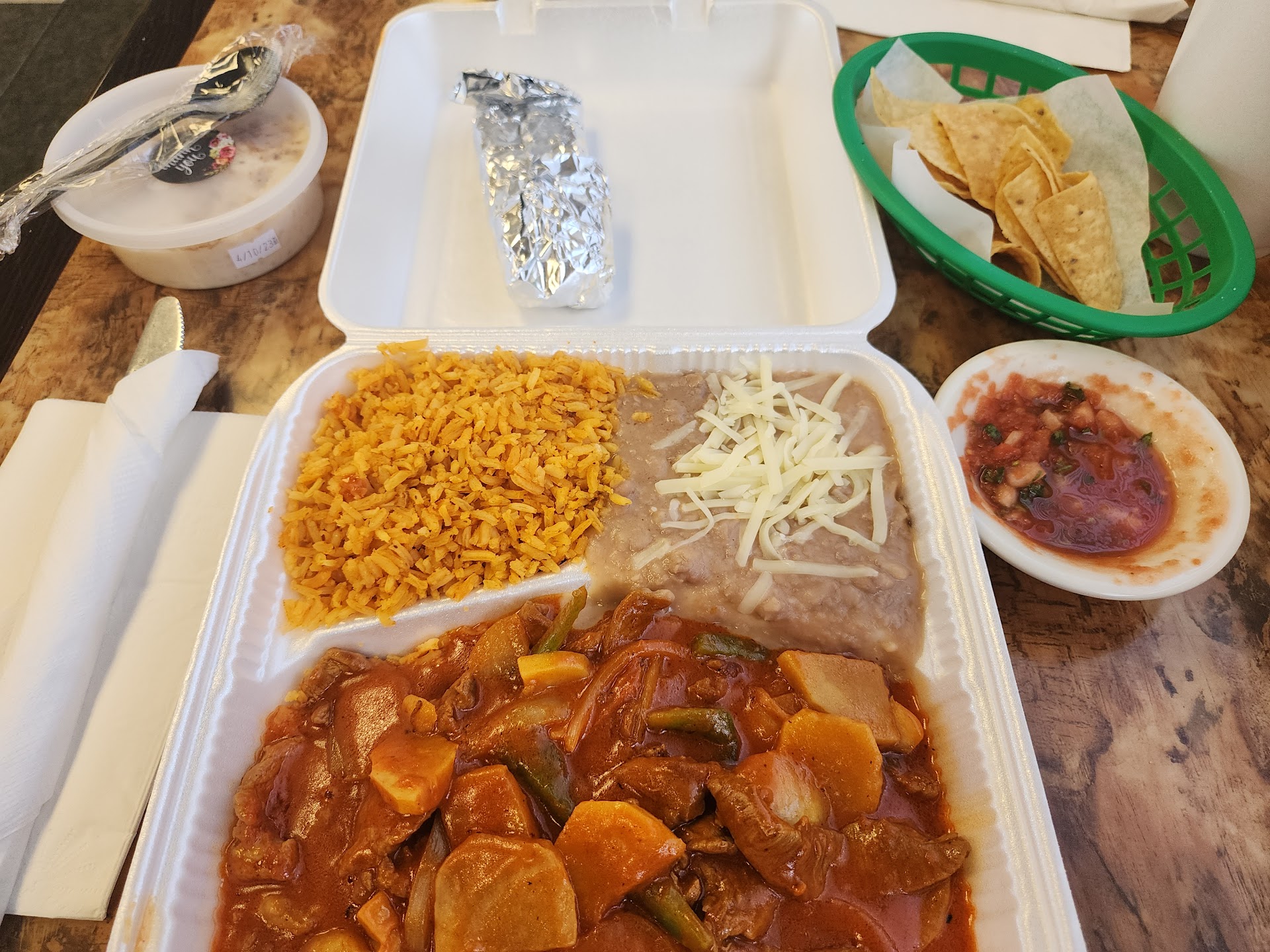 Read moreI was recommended here by a TA shop employee. I would like to say, THANK YOU đ..... When I walked I was greeted by the guy behind the counter. He explained yhe option on the wall, the sign &the menu. That made it more helpful in deciding. I asked a few questions and he didn't hesitate to help me decide on which plate to get. I told him that I don't eat spicy so he walked over to the cook to make sure that it wasn't spicy. He brought the chips and salsa out & at first it was mild then the bite came. The salsa was flavorful. The horchata was just the right amount of sweet. The meat was tender and the red sauce was velvety & smooth. It had the right amount of flavor and didn't over power the vegetables or meat. The rice and beans were good. I also bought rice pudding. I haven't tried it yet because I was over stuffed. I will say this, the service is outstanding. Finally, I can walk over from the truck stop and have a decent meal. Not many times have I came across a truck stop that has an option outside fast food or processed items. TO THE EMPLOYEES, keep up the awesome job. Anytime I come thru Barstow, I will be sure to stop in again. As a matter of fact, if I have time, I will grab breakfast in the morning. Please do not move from this location. Your restaurant is what keeps some of us grounded to home while...