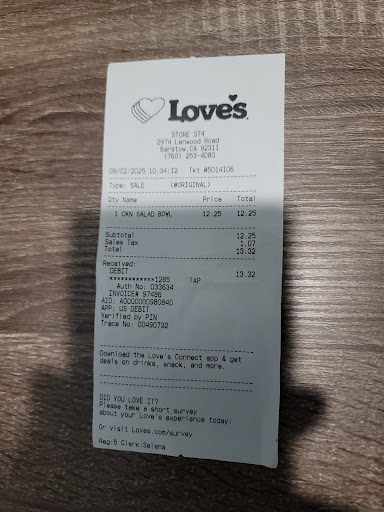 Read moreLove’s needs to get right and put in more Naf Naf’s and other real food restaurants in their truck stops. This stuff is so much better than Arby’s or Carl’s Jr. The staff is also so much more friendly and helps you decide by explaining everything. Just tell them it’s your first time and they will walk you thru it! Highly recommend and not everything is spicy. You can get mild on everything or spice it up, if you want. I always stop here when in Barstow...