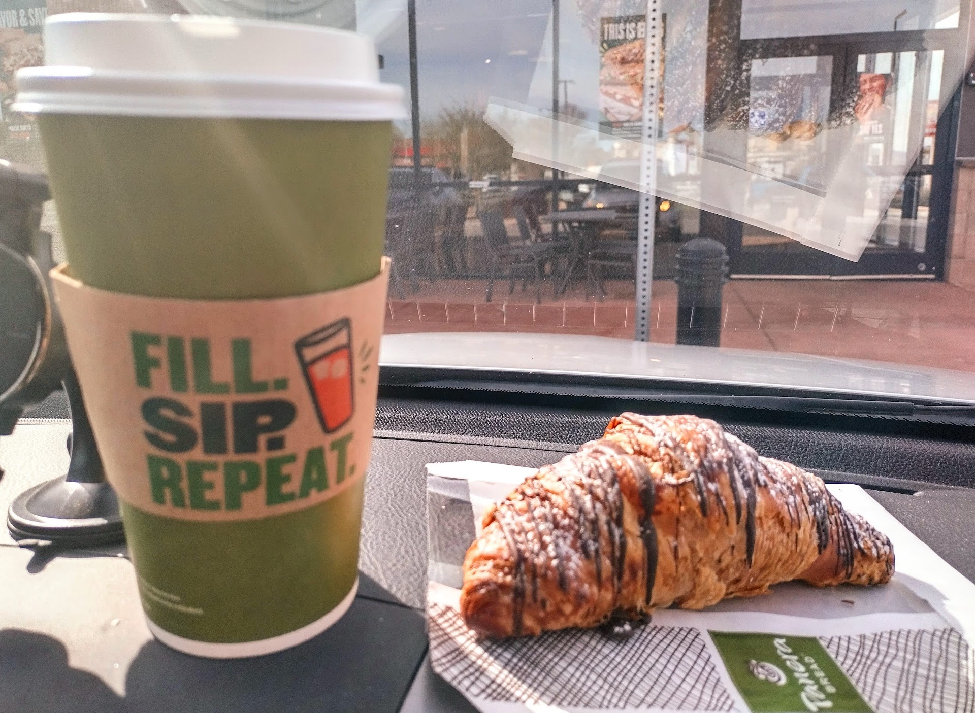 She could've easily carried 2 cups to the back & filled them. It wasn't my fault that Panera Bread Barstow was out of all their coffee, at the same time.