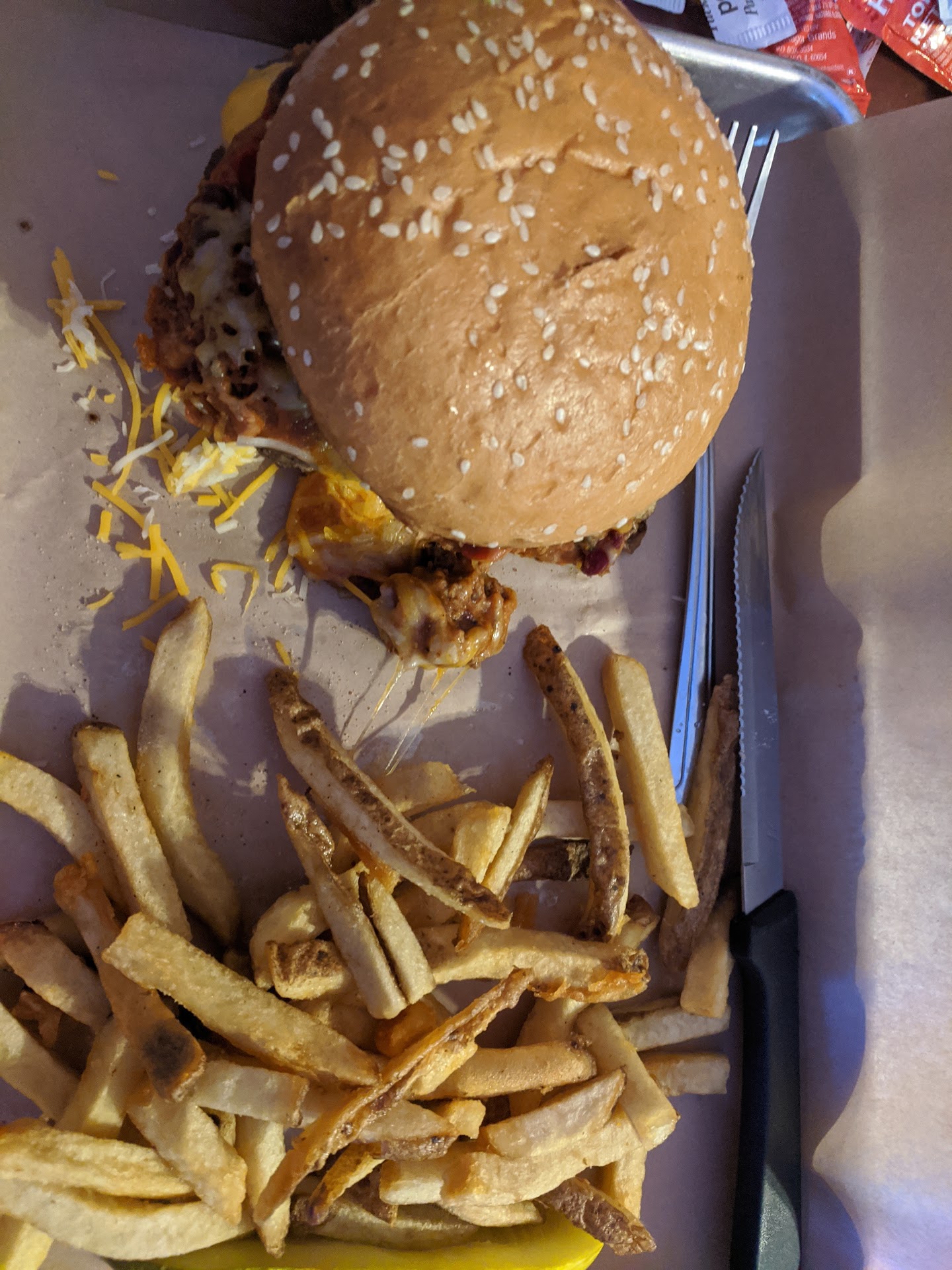 Food: I ordered the Pulled Pork Sandwich, very very good nicely seasoned pork, the bread was nicely toasted, the sauce was great and they give a generous amount of meat, I also had the Loaded Tots which are freshly fried tater tots topped with cheese and bacon very good
