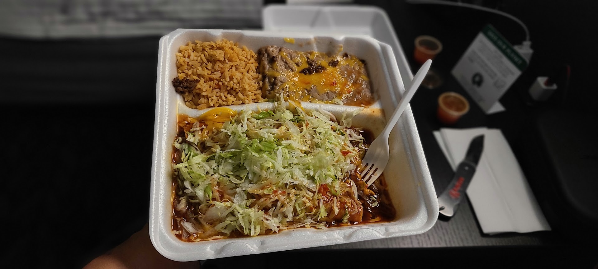 Read moreIt's a little run-down place they got extra stars because you're able to fit a semi in there which is nice for truck drivers. The food is not good it's really overpriced. The carne asada fries don't even come with guacamole it's $3 extra if you want a tiny scoop of guacamole. The inside and the outside of this place is pretty ran down. The young female was really friendly. The mail asked me if I wanted red or green Chile salsa for the top of my food and I told him red and then after I left I looked in the bag and there was absolutely not one red there was about six greens and I don't like green that is why I asked for the red. To be honest paying $16 for some carne asada fries that aren't even loaded like filibertos does it. And plain beans with a pinch of cheese and nothing else on a tostada was way too much for the lack of quality on this food. I really wish that I would have been given red chili that way at least those plain beans would have had some flavor. So the only real reason for the extra stars is the fact that I can put my semi truck in it without anyone complaining that the truck driver is...