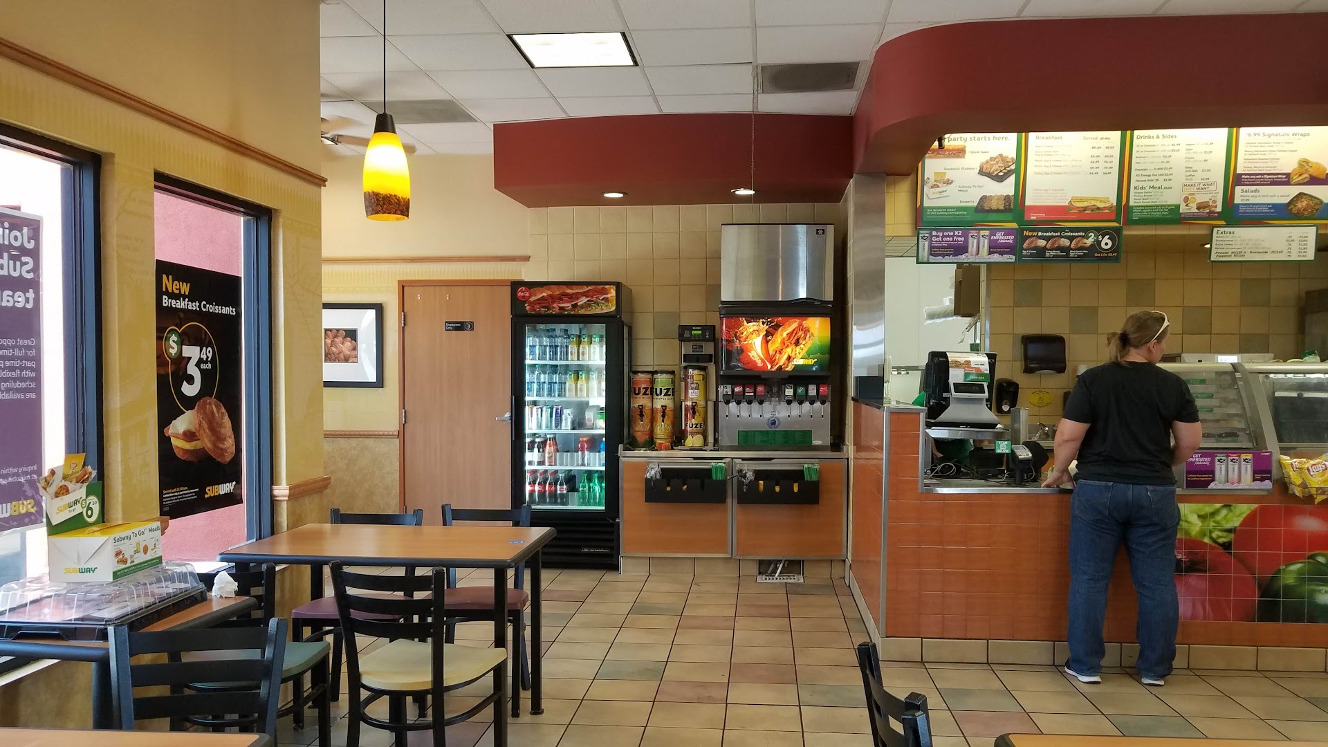 As far as atmosphere goes, it's nearly dead. The flow of foot traffic is almost non-existent and I have no idea how this Subway is still running. Want my advice, take the 6 minute drive to the other Subway at the outlets, that...