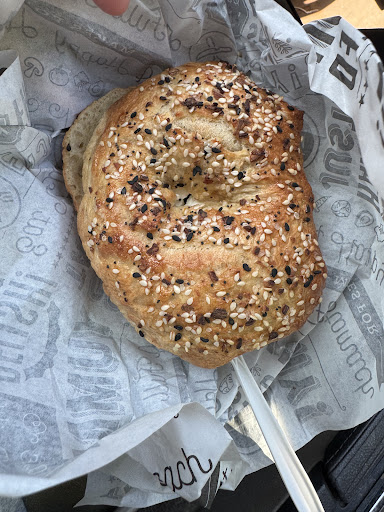 The everything bagel was good, but the experience could have been better with a few customer considerations. $6 for a bagel and cream cheese, they put it in a bag and put a cup of ice cold cream cheese in the bag, making it impossible to put on and spread on a bagel, but they also don’t give you any silverware to spread it. I had to turn around and ask for a knife and was given a fork (think weak cafeteria style fork with deep grooves under the tines, making spreading anything a tough task). If I hadn’t noticed before leaving I would have been in the car with a dry bagel trying to scoop the rock solid cream cheese out of the cup with the bagel. My only recommendation would be to offer the put the cream cheese on for your customer, especially since it is a to go item, most will be eating in the car. Also, the price is higher than I would be willing to pay on a regular occasion. I have gone to coffee shops and gotten breakfast bagels for less with bacon, egg and cheese and felt better...
