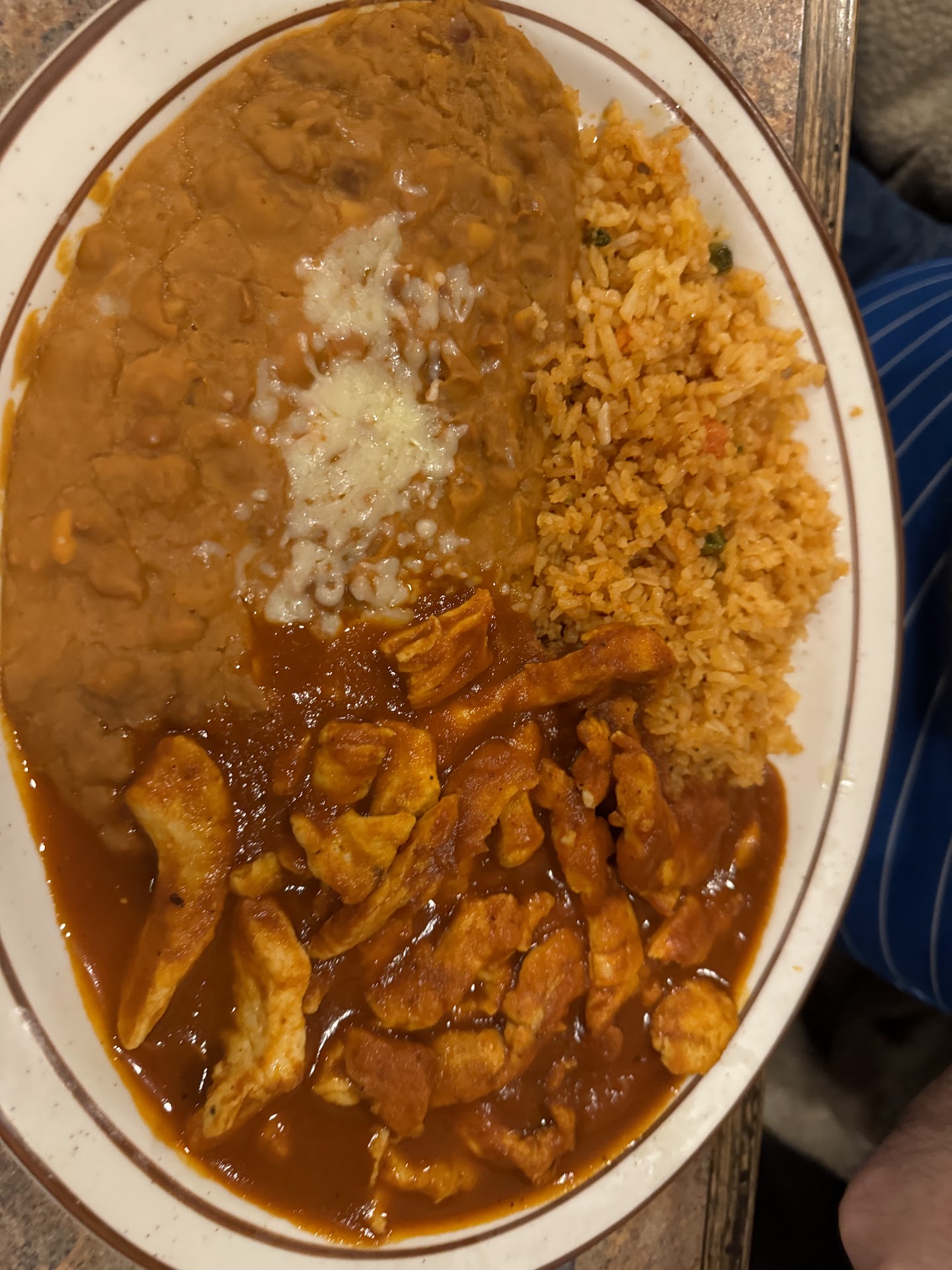 Read morefirst time i ate here. ordered a lunch trio plate of enchiladas. the beef one was just ground beef with nothing else in it. the chicken one was just chicken with nothing else in it except some red coloring spice?? on it. the cheese one had no cheese or anything in it. i called the waiter over to complain. he seemed annoyed that i would make a complaint. he did bring me back another cheese enchilada & that one i think had some cheese in it but it seemed no different than the white cheese sauce poured over everything. a couple of tablespoons of lettuce with a teaspoon of guacamole on it. a few hrs later i had terrible stomach pains. hubby had the luncheon fahitas. he said his lunch was ok except he was surprised that he did not get any tortilla wraps or condiments for the fahitas. the waiter didn't bring us more salsa as we requested. eventually tho after asking him again later he brought us some. did not like this place. food was not that great. won't be back. glad we did not...