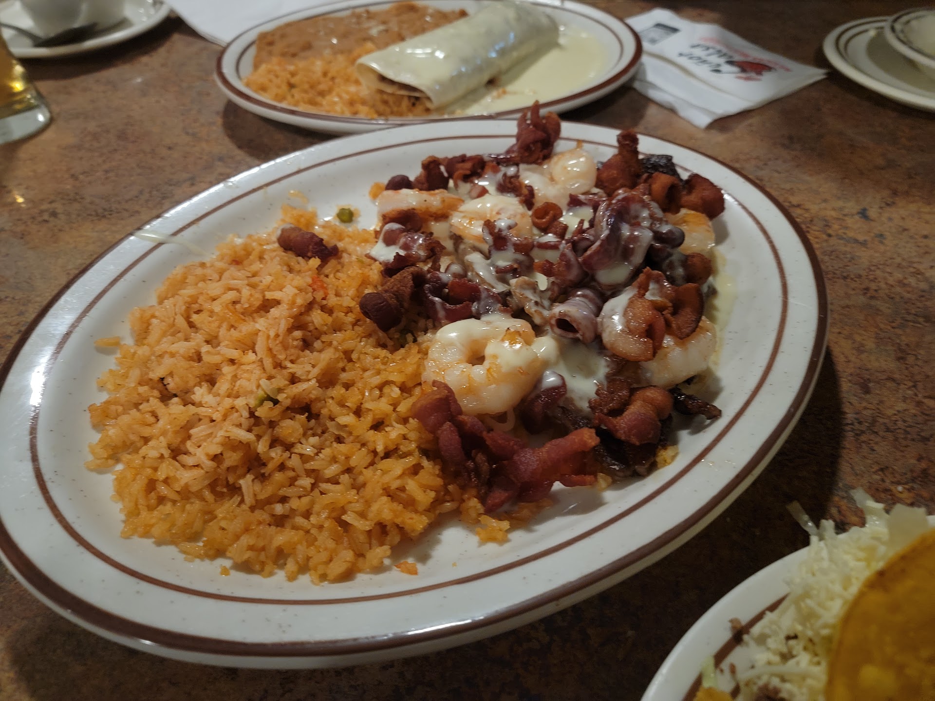 Ā Ā Ā Read morefirst time i ate here. ordered a lunch trio plate of enchiladas. the beef one was just ground beef with nothing else in it. the chicken one was just chicken with nothing else in it except some red coloring spice?? on it. the cheese one had no cheese or anything in it. i called the waiter over to complain. he seemed annoyed that i would make a complaint. he did bring me back another cheese enchilada & that one i think had some cheese in it but it seemed no different than the white cheese sauce poured over everything. a couple of tablespoons of lettuce with a teaspoon of guacamole on it. a few hrs later i had terrible stomach pains. hubby had the luncheon fahitas. he said his lunch was ok except he was surprised that he did not get any tortilla wraps or condiments for the fahitas. the waiter didn't bring us more salsa as we requested. eventually tho after asking him again later he brought us some. did not like this place. food was not that great. won't be back. glad we did not...