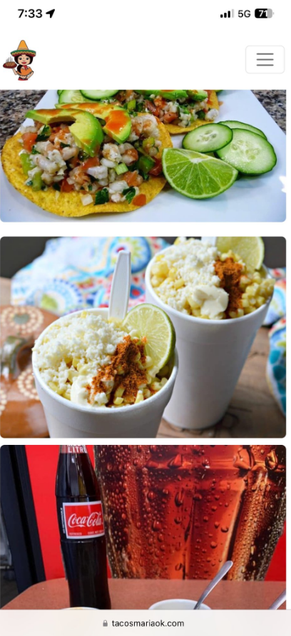 Read moreNew (to me) Mexican place in Bartlesville, and what a great addition! Was in town for 3 days and made a point to go twice. Had a sampling of the various Street Tacos and one Supreme. All were excellent! The Rice and Bean sides were great and plentiful with a take out order. The fare is of the "authentic Mexican" bent as opposed to TexMex, so take that into account depending on your appetite that day. They were a week away from getting their liquor license, so no review on the Margarita's, but will add that when I get back. Guess it is the storefront evolution of a popular food truck in the area. Met Maria working the front of the store. All the servers were pleasant, knowledgeable and as enthusiastic about the restaurant...