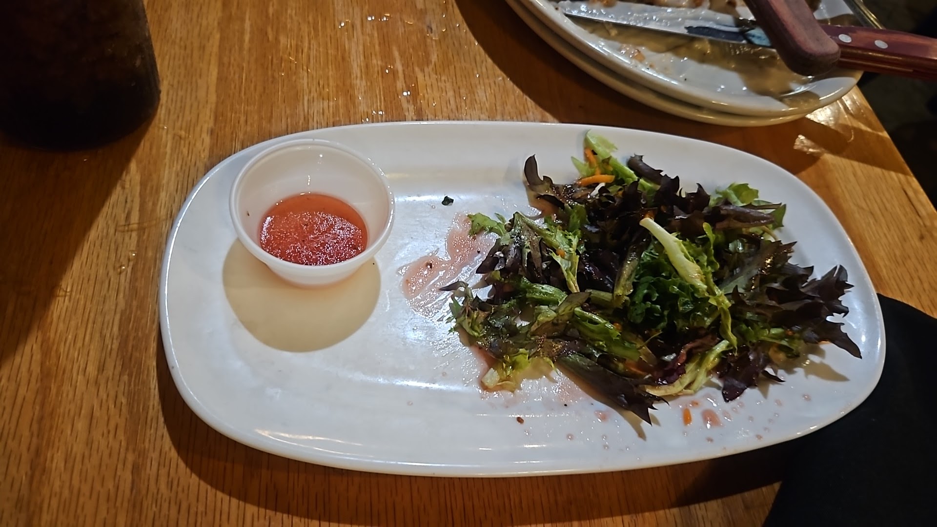 My wife had a great Lunch sized chicken fried steak with mashed potatoes, gravy and a side salad. Tender tasty beef, breaded just right and fried to an even golden brown. The potatoes and gravy were made from instant but tasty. Fresh greens in the small side salad, with a dressing of your choice.