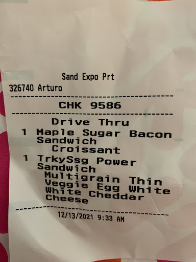 I ordered both sandwiches showed in the receipt and the drive thru cashier gave me attitude that I ordered the maple bacon and should have said the maple sugar bacon sandwich croissant instead. What did it say on the receipt??? Exactly, and she blamed it on the other guy Arturo did not do the sandwich. They closed the window but you can hear them speaking on their native language and laughing. Making it sound like I was the one who did not order right instead of her apologizing that she read the order receipt attached to Dunkin paper bag that I was right and she made a mistake but instead decided to argue with customer and blamed I made a mistake with my order. I gave this place a chance last time for my maple brown bacon sandwich croissant was burnt. But this concluded I won’t come back for this very poor customer service. It even said on their window to call how your service went... Time to call...