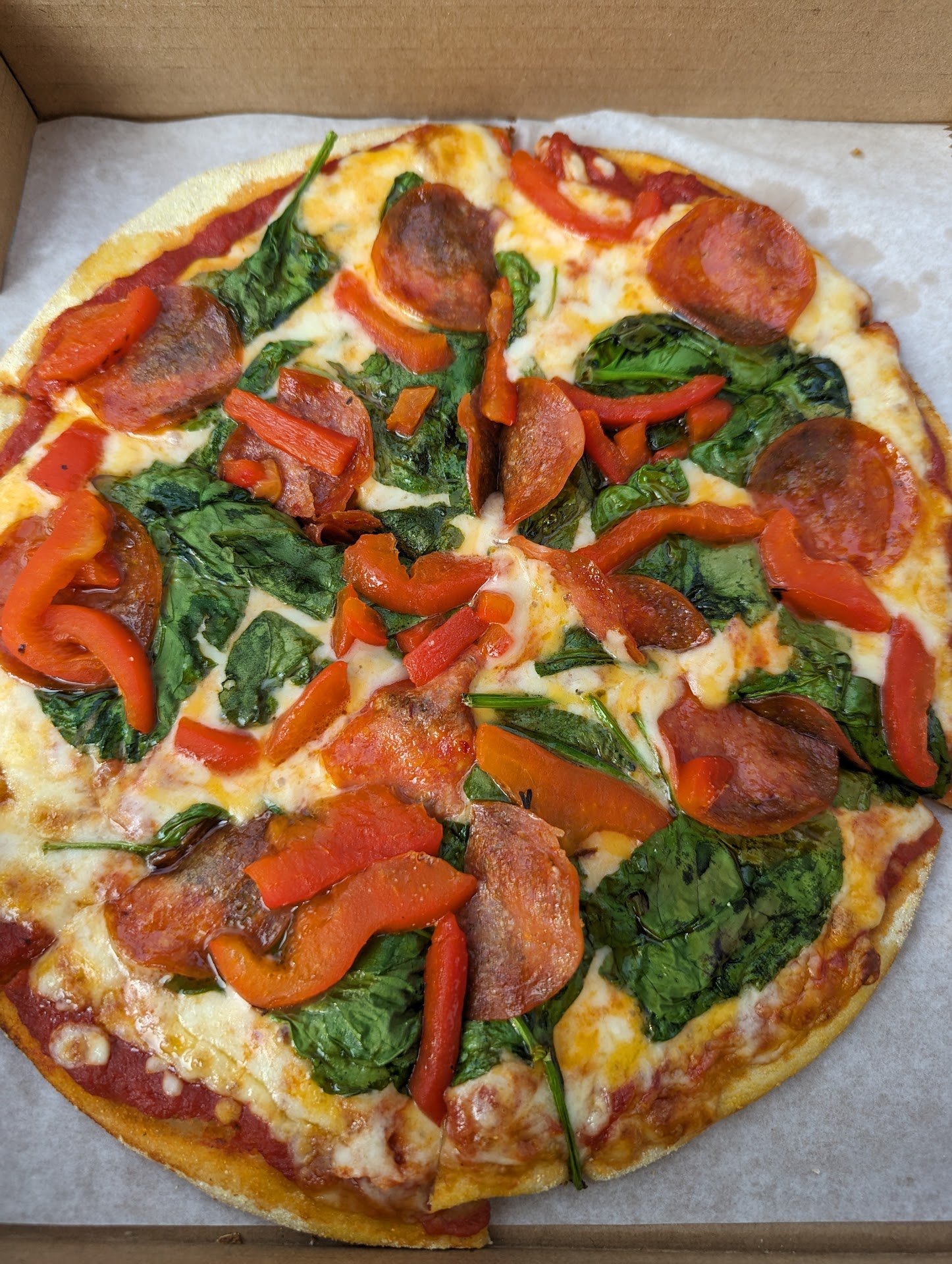 We had dinner there last night, and it was once again fabulous. Great service with a smile (thank you, Eric), and a delicious dinner. He had the special -- meatballs and sausage in the house sauce over spaghetti -- and finished every possible bite. I tried pizza, which is new to the menu this year. I went with the spinach-feta with shrimp. Also wonderful. A thin, crispy crust held up to the juicy shrimp and garlic, and I ate the whole damn thing on my own (I should point out here that the "whole damn thing" was a one-person pie, about the size of a dinner plate).