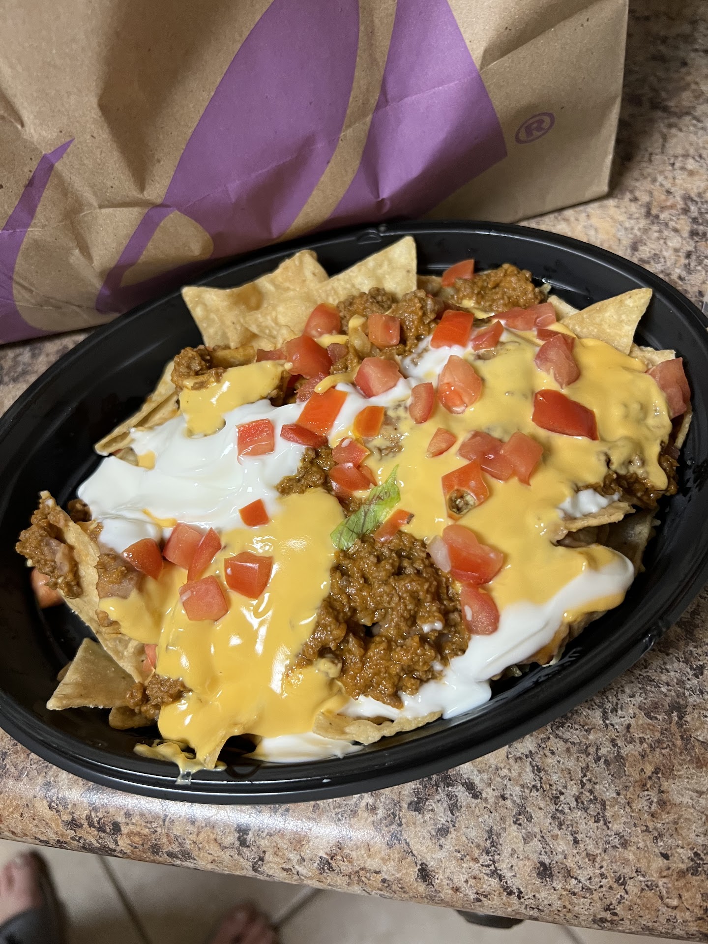 Read moreBig Zero 0 review really!! That Taco Bell needs to close down, we went through the drive thru and the girl taking the order sounded brain dead, told our order twice, It was nacho bellgrande no sour cream extra meat extra cheese, and lux box no sour on anything, she asked whats your order, when we repeated a second time. Then, we get to window she takes payment and walks off and their in the main diningroom, one had a baby in his arms, they were all just ignoring, and walking slow like people in drivethur we not even there, they slow drag out of the diningroom back to the place where their suppose to be working, she opens the window stands there looking back my hisband says there a problem she said you have bellgrande we said yes an the lux box, still we wait while their all going at snail pace, finally she hands our food out but not looking at us looking at the guys. Then!! we get the shit home to have some oinda supper and no clue what those two are def not lux box with sour cream all over and the nachos bellgrande as you can see full of sour cream and no extra nothing so I try and get some of it off to eat it and oh my God tasted like they dumped a whole shaker of salt on the chips so much my mouth all inside on fire, what the hell. I am not exaggerating it was a ton of salt and broken pieces of chips. Close it down, apparently the owner does not give a crap, as I read other reviews pretty sure as they said to they were stoned out of the mind or something to act so slow and brain dead. And apparently nothing is being done about it but some generic bs response, which I'm sure I will get the same generic one. So this is a heads up if every quits going to this Taco Bell they will have to...