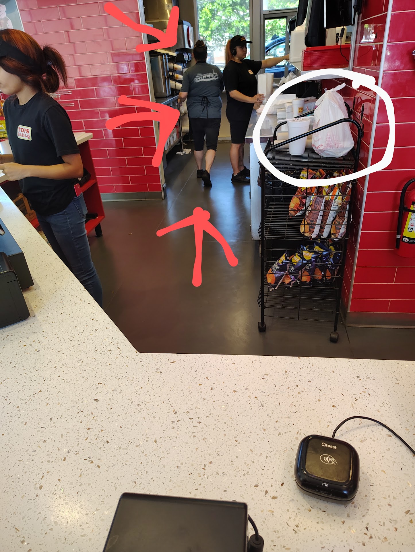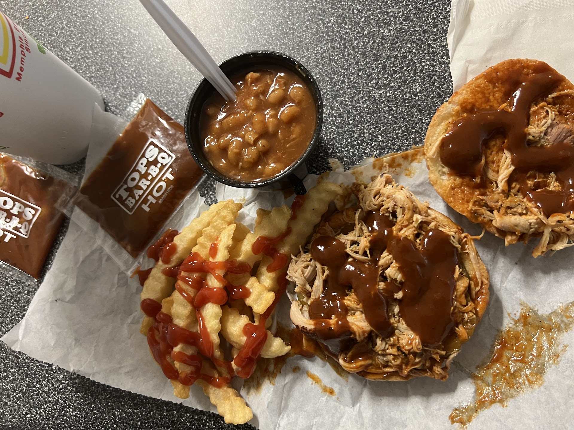Read moreI really dont like to do this but hope if i do write this review it might help. Waiting to place my to go order from the front counter, outside line slow, inside was my option. Wrong...person taKing orders was very uncoordinated. He Was having to take food to taBles as well as take orders, so the people at the counter ordering were left waiting. When it was my time to order the counter person was doing other things and not at the counter. The lady at the window came over to take my order. Right in the middle of me ordering she saw another customer get up to open a bottle of sauce. She stopped taKing my order, walked away to speak with the dine in customer. She then went back to the window. She finally came back to finish my order after taking another at the window. People in line behind me were as surprised as I when she walked away mid order. Then the other counter worker started delivering dine in orders to persons that came in after me. I saw my order on the cook line. I ask him if that happened to be my my to go order. He then bagged mine with a slight attitude. It took me over 30 minutes for a sandwich meal and nachos. Food was less than desirable. Did not taste good at all. This stores quality is no where close to how Top's Memphis reputation is. If all the stores are like this they will be closing. Saving grace to this is the Sunday church crowd was there to eat. BTW...will NOT BE GOING BACK TO GIVE THIS STORE ANY...