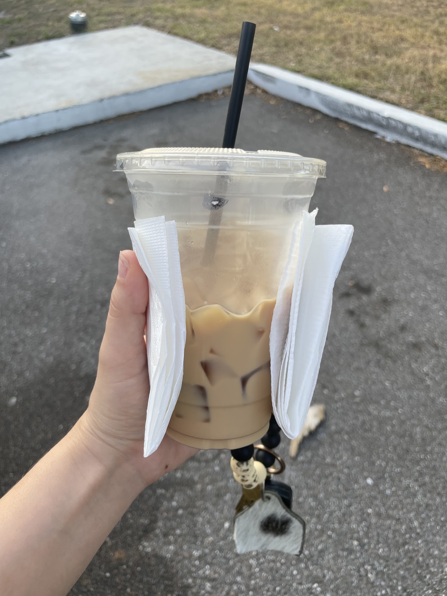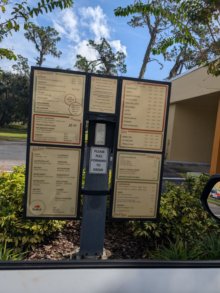 On our way to Miami, we needed a quick stop to grab some hot steamed milk for our child, so we searched nearby and found Banker's Brew Coffee. This unique drive-through cafe has four lanes for customer convenience, although only one was open when we arrived.