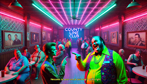 We drove 13 hours, passing the Rangers up the street, before finding our neon oasis. I donāt have a family, just kids. When we walked into County Club and heard the good old country music, my boys really went for it. The first time Iāve been there, but it wonāt be the last, because the drinks are cheap, the men are generous, and they dance with cordiality, unlike most urban settings. The light show is phenomenalāUV fluorescent nail polish, infrared light, and a little smattering of glow-in-the-dark goodness. The service was great, the burger was rare (just how I asked for it), and the meat didnāt taste freezer-burned or frozen. It was fresh, I thinkāAngus. Which is interesting, because my son Angus had recently changed his name, but by the time we got to County Line Club, he was still going by Angus. When they asked for his order, he spit up his Mountain Dew, laughing at the jokes our server told. Itās a real laugh riot at County Line Club. The floors are slippery, but thatās not a deal breaker. The walls are wetāmaybe from humidity, because after all, itās Florida. All I know is every person there had a different cologne on, very strong, and all the ladies wore their own unique, personalized perfumes. I didnāt appreciate that the American flag on the goodies table was upside down, though of course, the direction of approach played a role. Anyhow, a great time for a good old American boy or girl. Donāt...