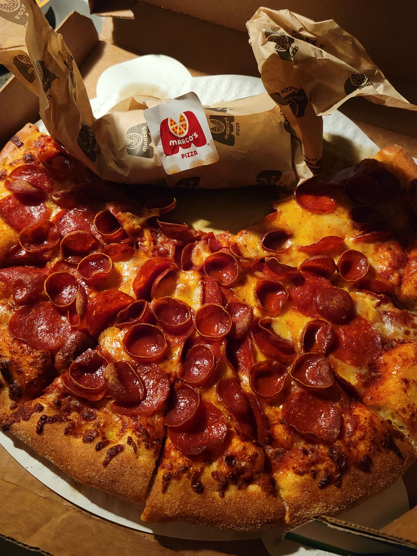 Read moreAs for all pizza establishments it comes down to the heart and soul. The Doug has to be fresh, stretched properly and proportioned well and have pride in it. I'm never dissatisfied with Marcos, if the person making it is just trying to get through an nother day at work you can tell . If the pizza chef is trying to top his/her last masterpiece you can tell. It comes down to the whole team in the stores over all enthusiasm. Sometimes they knock it out of the park. It's a big step above dominoes and pizza hut. You know if a pizza is good half way through the second slice. If you don't finish it and toss it back in the box for your dog or if you crave a third slice . Warning Don't USE UBER EATS. IF YOU HAVE AN ISSUE WITH ANYTHING , CHANGE YOUR MIND CANCEL THE ORDER, YOUR MONEY WILL NEVER COME BACK TO YOU. CALL THE STORES DIRECTLY. WE Don't NEED A DELIVERY SERVICE( OVER CHARGING YOU) For a company that is designed to...