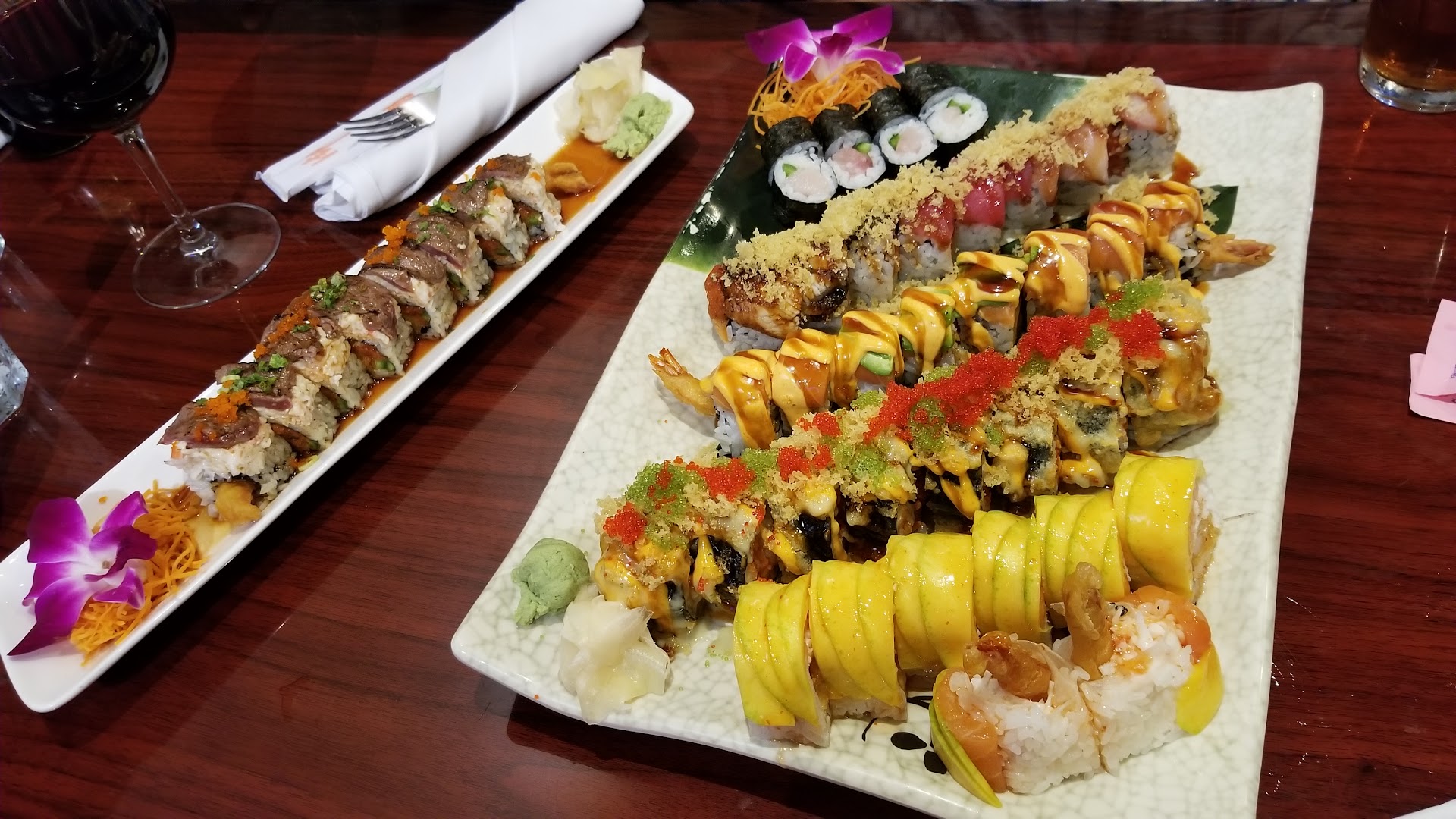 Iām giving 3 stars because of effort, politeness and decent service, you can tell they kind of try. The food could be WAY better for the price point. I hesitated for a long time to write this review because I donāt like bashing businesses or anything- I just believe in putting honest opinions so I did try this place several several times at various times and days. But Valentineās Day was the last straw. I ordered pickup online and waited an hour and a half for my food. I ordered sushi only- 3 rolls and 4 sets of nigiri. Paid 80$ with the tip. Only one fried roll so nothing else should have had to be cooked. I barely got any soy sauce and absolutely no wasabi or ginger at all which was super disappointing because I love my nigiri with wasabi. I understand that wait time was going to be longer on such a busy day but I was getting increasingly upset as I sat there waiting for a pickup order while several tables were sat and serviced- people who had just gotten there! I just waited patiently though and did not say anything as I saw I wasnāt the only one noticing the slow takeout orders. I thought I was doing the right thing by ordering pickup but we should have just gone and sat down instead. The sushi was disappointing because it should have been way fresher (it was fishy tasting) and you could tell they have cross contamination because my salmon was disgusting and smelled strongly of garlic and other things they top rolls with. I almost threw up after eating it, it smelled horrible and was warm compared to the other nigiri- the only nigiri that was good was the tuna and donāt worry I kept the fried roll separate on the way home so that definitely wasnāt the cause of the warm fish. Iāve also tried their orange chicken dish and general tso chicken and a couple other things like the fried rice and theyāre all mediocre at best. Nothing saves well. If you go for those things just go down the road to Chinese Dragon. Long story short: save your money, you can get a better deal for fresher sushi in Austin. Just...