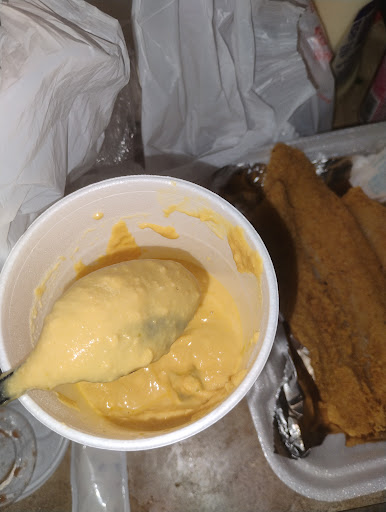 1 fried catfish fillet and 4 fried shrimp (solid)