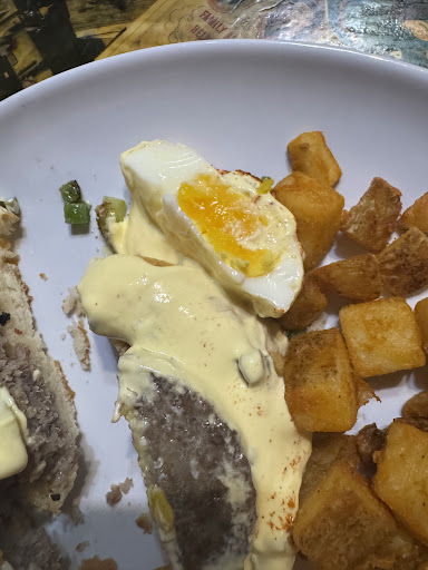 I ordered the Texas Benny, which was mediocre. I was only served one at first because the waitress said the egg was overcooked. This is ironic, because when I went to eat the Benedict they served, the egg was overcooked. (See photo) Why not just remake both eggs? I didn’t make a scene because at that point we had been waiting 30 minutes for our order and it didn’t seem worth it. The second Benedict did come back, with the egg cooked properly, so that was good. Really the food was nothing special and not worth the wait.