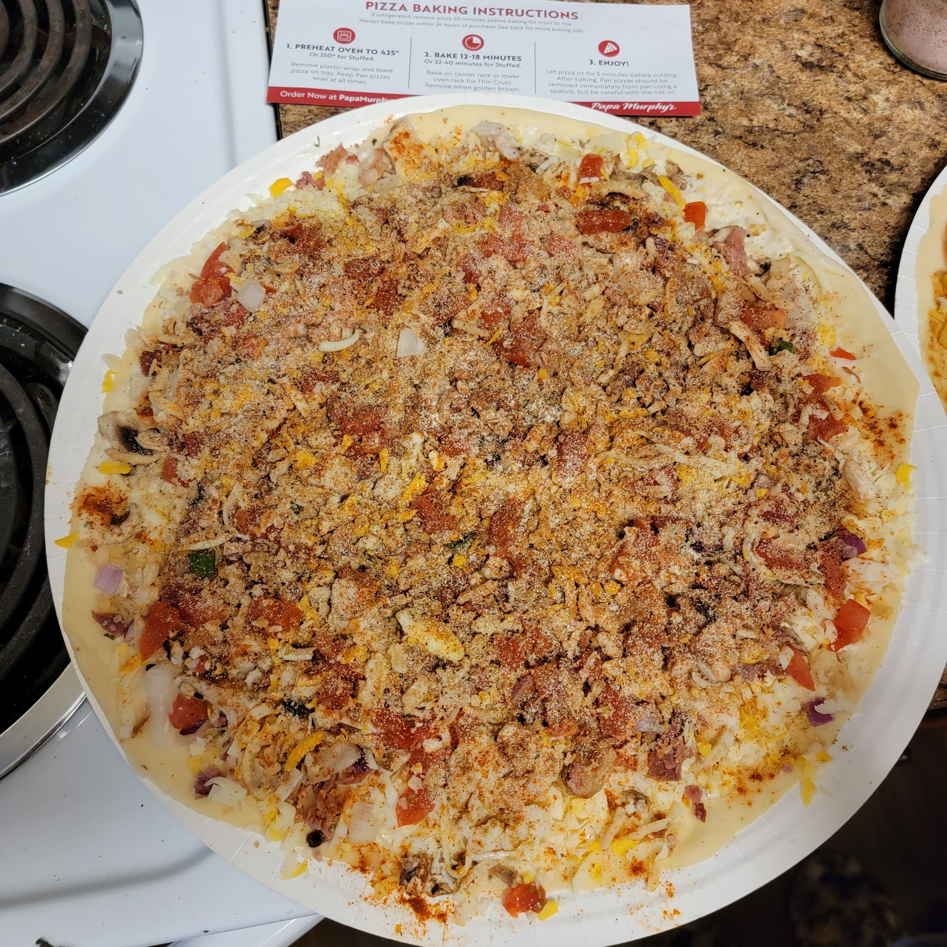 First time trying Papa Murphyâs but had heard good things about those in the state we live. Was looking forward to it. Ordered ahead online & prepaid. Went there and then in to pick it up on my way to next errand. Figured it would be all ready to roll and Iâd be onto my next (last) stop. There was no else there. Gave my name. Girl working grabbed my ticket that was laying on the counter and said âOh they hadnât made it yetâ. She went to the back and another employee came out. He made the pizza then. They all seemed very worried about cleaning up the back. Another customer came in while I was waiting. She had to wait for someone else to come help her. She was picking up order there also. 3 people working; none seems to worried about helping customers. He finished our pizza and handed it off to me. Was made well but the wrap looked like it was thrown on and not covering all of the edges well (I didnât discover until I went to put in our vehicle). Pizza tasted good once we baked. Original crust as thicker than I expected. Top was dark before crust baked all of the way thru even though I followed directions. Would get thin crust next time. Not sure it was any better than other chain pizza where you donât have to bother with cooking it. Disappointed for sure because...