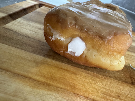Read moreUpon entering this "donut shop", I was surprised that it did not smell like donuts. I selected an apple fritter and a maple bar, two selections I love at Bastrop Donuts. Upon arriving home, I removed both items from the bag and was surprised at how dense and dry the maple bar was. It was filled with a runny version of that stuff they put in Twinkies. It did not taste like maple and the stuff inside was nasty. I threw it away.