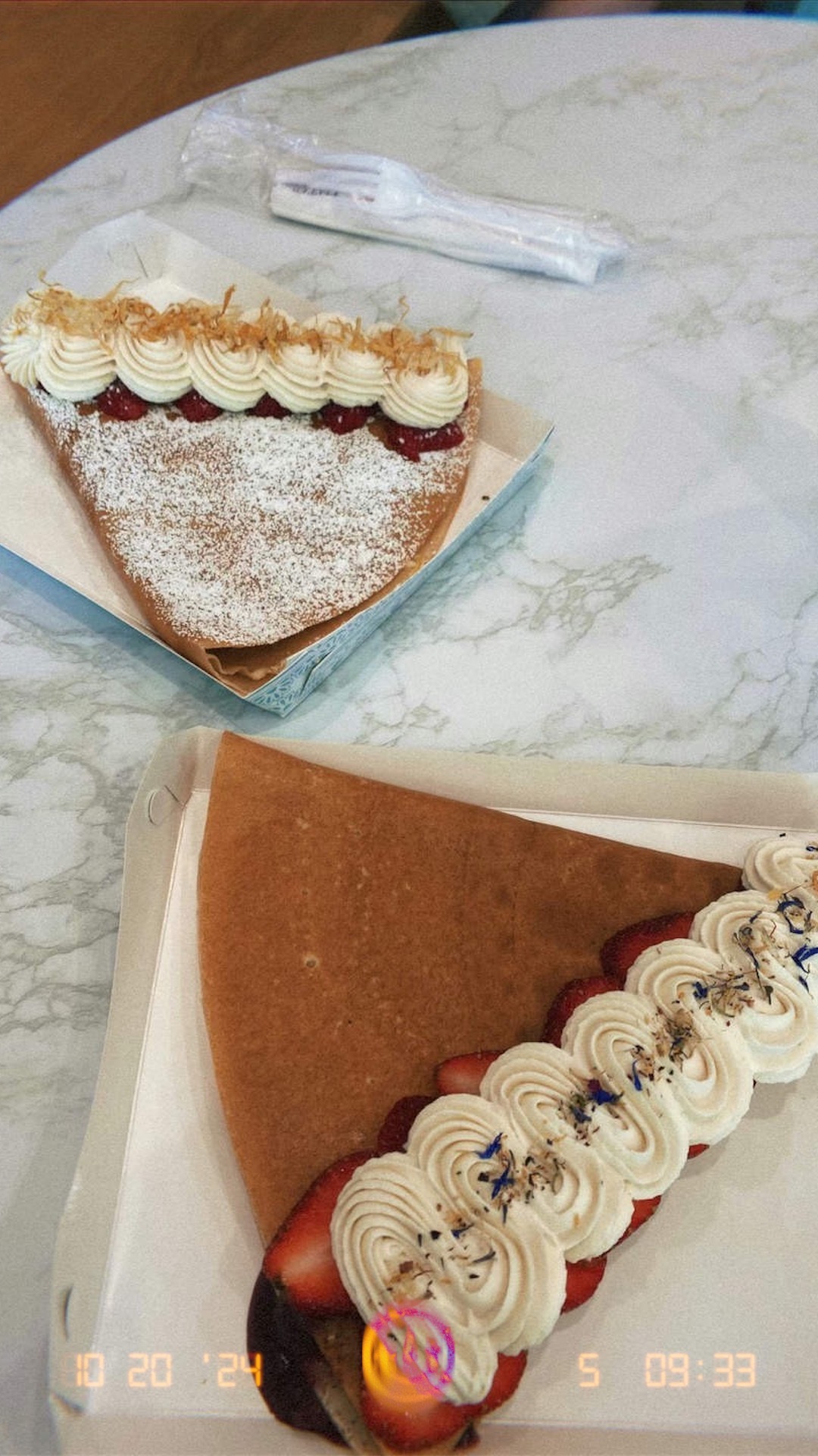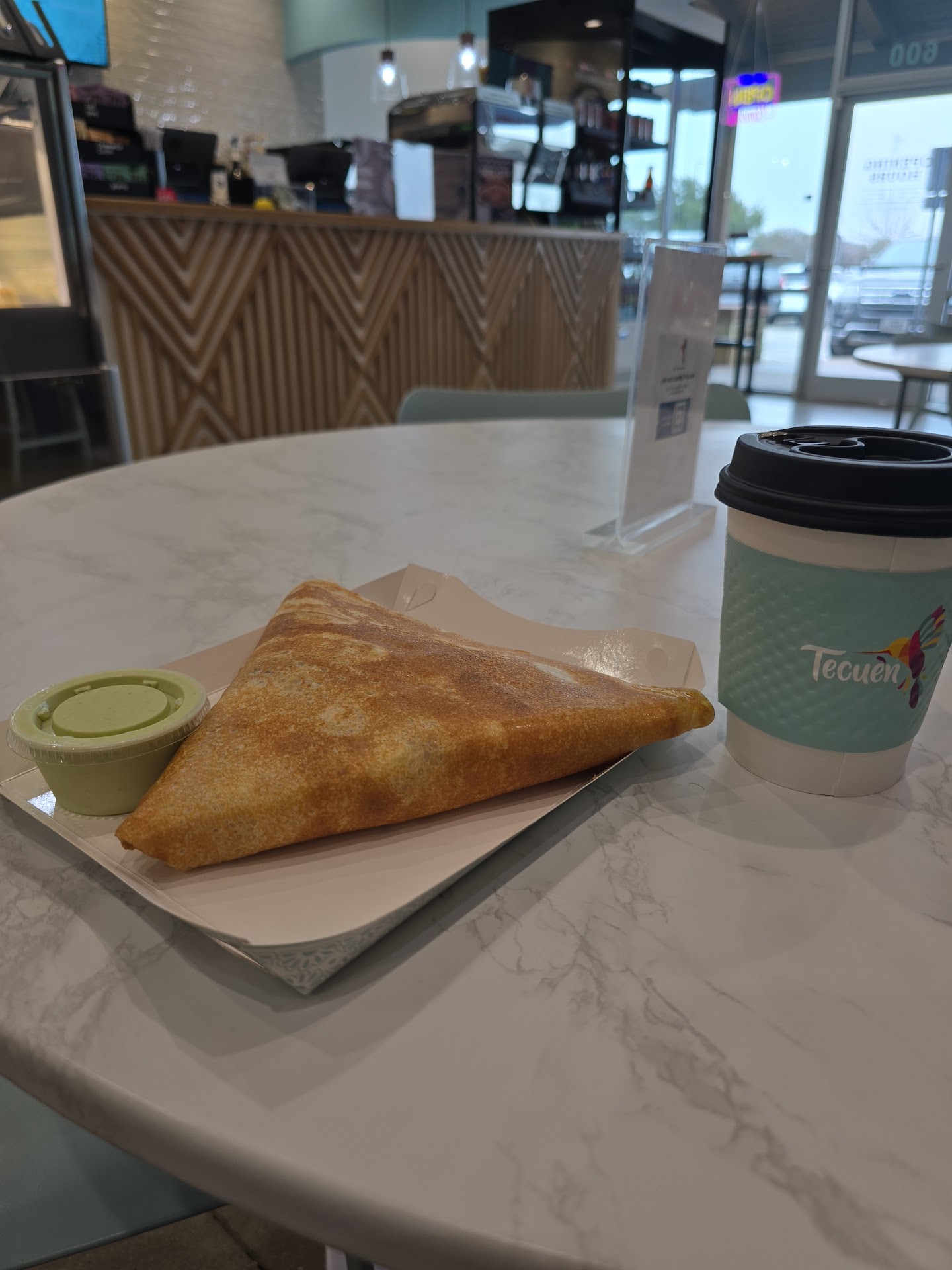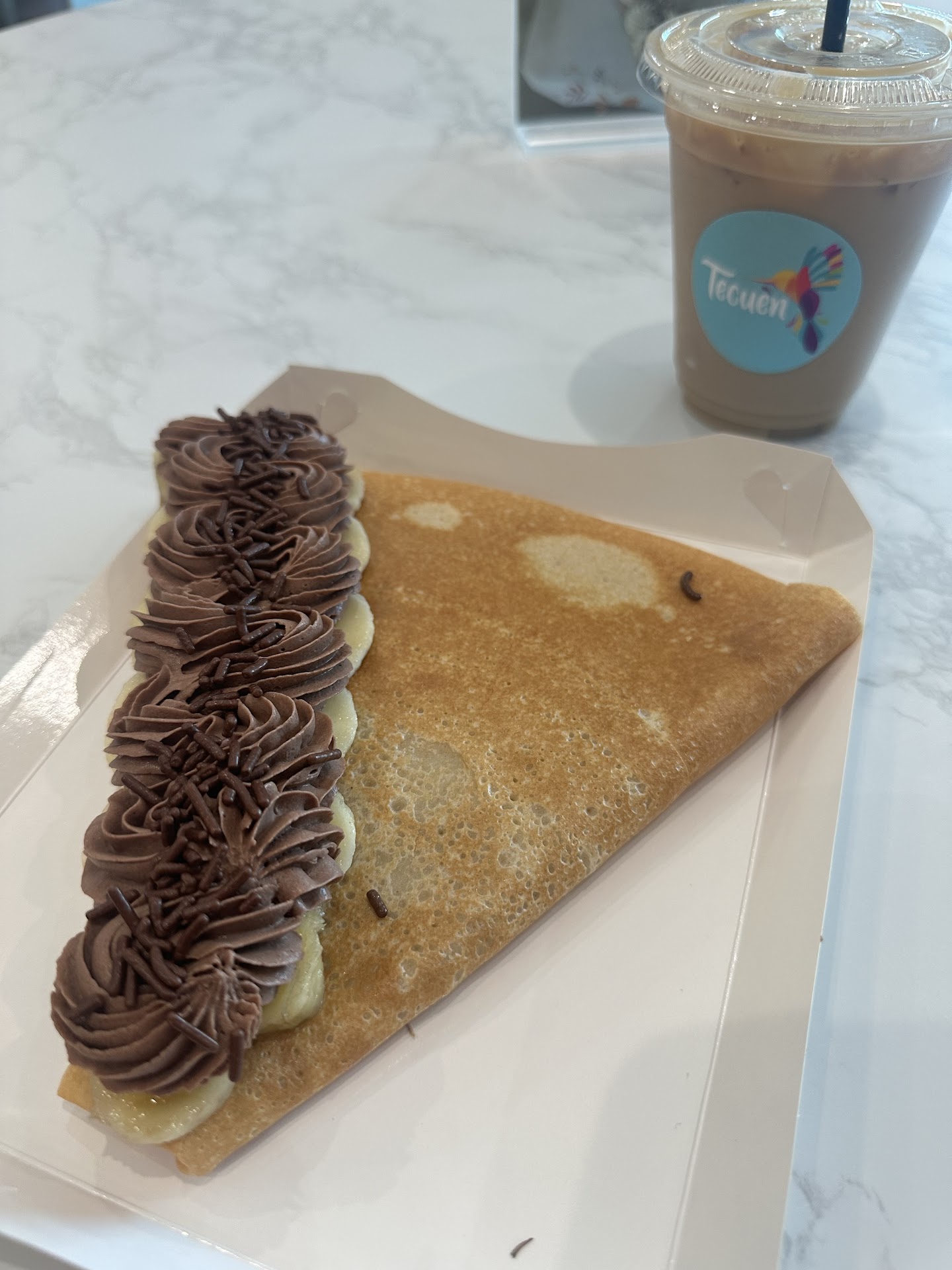 The food and coffee were both absolutely delicious! You can tell that the ingredients are fresh and high quality and you get to watch them make the crepes right in front of you! The food was so impressive that I ended up ordering two more crepes to take home for my husband to try. Those were the seasonal ' pan de muerto' and 'prosciutto' crepe. I'd be lying if I told you I didn't have to help him eat those, too! :)
