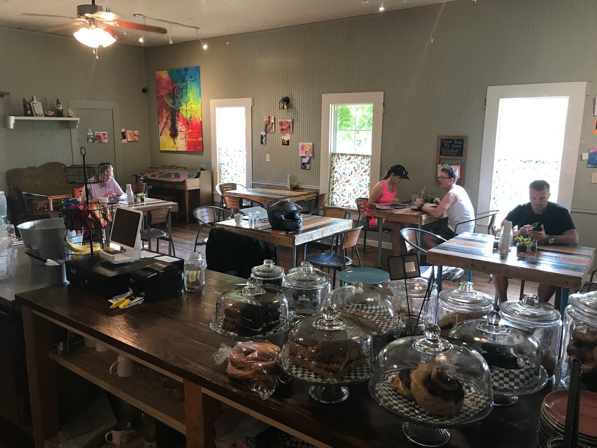 Ā Ā Ā Read moreBoy were we happy to see this lil coffee shop open! It was 100 degrees in Bastrop so we were looking for some iced beverages. After looking at the menu, we decided we were hungry too š Tough Cookie is mostly vegan and has WAY more than cookies. We got the MayBLT, the veggie sausage filled pretzel bread with melted butter and mustard, the hatch pepper and cheese scone, cinnamon roll with icing and a sprinkle cookie. Oh yeah, AND the peanut butter chocolate krispy treat... we were in heaven! Sadly, thereās no indoor seating right now (in fact, one of the bakers came out from the back to tell me to put my mask back on when I took a sip of the coffee I orderedā what a ātough cookie!!ā š) but the patio was shaded and my family and I were more than comfortable and willing to sit outside. I cannot wait to visit Bastrop again so I can try more of what the Tough Cookie menu...