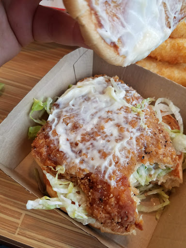 As we waited at the front counter for our order to be taken, the manager on duty had to come out of the kitchen to give a refund to an elderly couple because the cashier had put their order in wrong. I guess we should have known then to go somewhere else. I try to give people the benefit of the doubt though. We are all human and make mistakes sometimes. We give our order. When we get to the table with our food it is already obvious that our order is wrong. We ordered 2 fish sandwiches and a fish sandwich combo. Two sandwiches are in paper wrappers and one is in a box. I didn't even think to look at the receipt I take the one in the box and one in the paper up to the counter and ask what the difference is. The says that the one in the box is chicken. She offered to make me another fish and I politely told her no and went back to my seat. The manager on duty decides to yell to me from the kitchen and offer to make another sandwich. Once again I say no. Only this time I tell her that I don't want to wait for another sandwich to be made. She says that fresh fish has just finished cooking (still yelling at me from the kitchen). I say no I'm good, and her tone of voice told me that she got an attitude. She said "Well you have a good day ma'am!" Totally unnecessary. I could have brushed all of this off, if the chicken on my sandwich had looked edible. On first look, it appeared like it was either old or very overcooked. Then after I bite into it I realize that the chicken inside of the breading is barely cardboard thick. I was less than thrilled to realize that my sandwich was 95% bread and breading. I would have gotten more chicken in a McChicken sandwich next door for 1/4 of the price. That just made the whole experience less than worth the whole experience. Especially the attitude that I received from the...