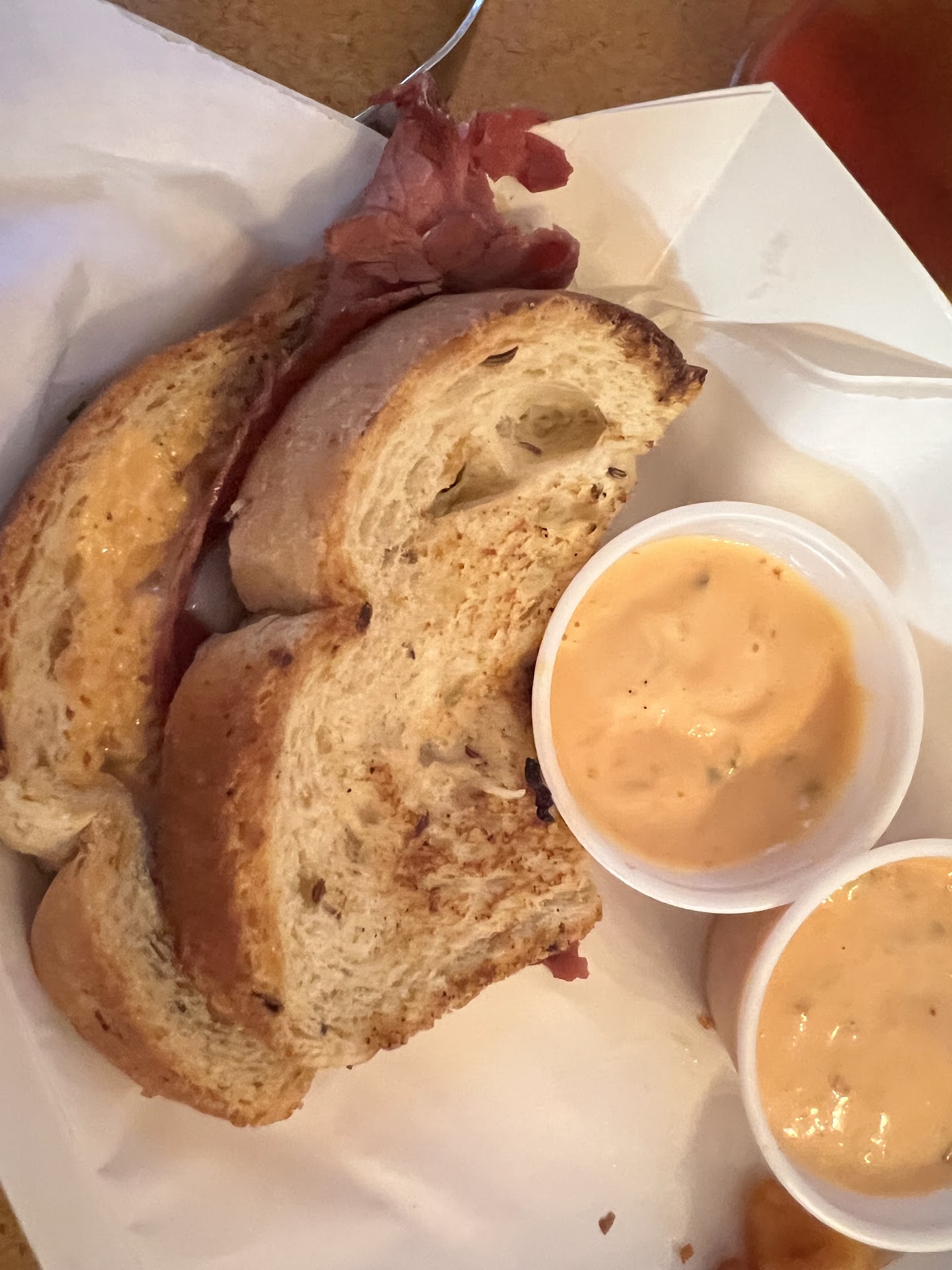 Read moreWe love supporting local businesses so we gave this place a try. The atmosphere and people were inviting. The menu is limited but with variety. They also have daily specials. Hubby got the fish sandwich special and I got the Reuben. While it took some time to get our food, it was not an unreasonable wait. Although the fish sandwich with fries arrived hot, hubby said the flavor was lacking. It was not a dish he would order again. My Reuben….well….was….simply pathetic. The sandwich was barely room temperature. There were 2 very measly pieces of corned beef, a thin slice of Swiss cheese and less than a tablespoon of sauerkraut on the whole sandwich. It was a struggle to classify this a Reuben. At the price charged for this sandwich I was extremely disappointed.