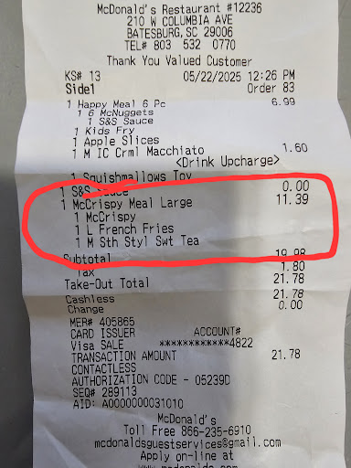 Specifically today was the worst, and that's saying a lot. I ordered a McCrispy meal combo, and up sized it to a large combo, paying the extra money ($12). The girl taking my order had me repeat the whole order 3 times before she got it put in the system.