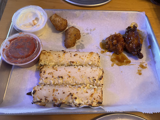 Saw the sign and decided to knock another restaurant off our bucket list. Interior boasts a variety of seating options from at bar seating to high top tables to standard table seating. Relatively large, open dining space with numerous big screens, sports decor, and wood details throughout. There's even a brick fireplace that made it feel even more homey. We ordered the Rotel dip and chips, Large Mexican pizza, and a half order of the Supreme salad. Everything we ordered tasted amazing and arrived temperature hot. Heads-up: If you're expecting tortilla chips with the cheese dip, then skip this appetizer. If you're okay with potato chips, then go ahead and order it. Service was exceptional, food was delicious, and the environment was laid-back, comfy, and clean. This place kind of reminded me of a mix between US Pizza company and Pizza Cafe. Only negative I have would be the Womens bathroom (I used the one upfront by the main entry doors). No stall doors. Just 2 open toilets separated by a partition. I even locked the main door, which as luck would have it didn't actually lock as I had a few teenage girls walk-in on me mid-pee 🤦♀️🤣🙃🤷♀️ Other than that,...