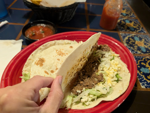 Read moreOrdered online. Went to pick it up and 3 bags were sitting on the counter, one was clearly ours. We thought it would be wrong just to grab it and go, so we waited. My girlfriend deals with stuff in public because I have severe hearing loss. She was trying to flag down the staff but they ignored her. The third waitress walked by and literally put her hand up and turned away. Someone finally gave us the food. Determined not to let it ruin our night, we went home to have dinner and a movie on a night sans children. I asked how much it was. $45!!! For two small entrees and some chips and queso. I was still keeping my cool...until we started eating. The description is what I'd call "garden variety," and that's being nice. If I wanted to be honest, I would say that it is on par with something I would get at Taco Bell. But, at least Taco Bell doesn't have stale tortilla shells. We are not going to waste our time or money at this...