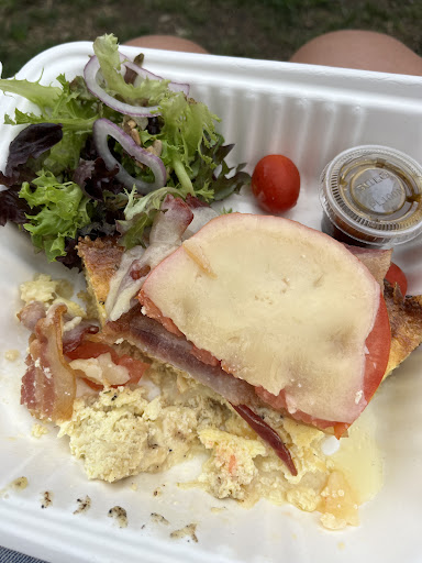 Pics are of a āquicheā (pictured with the tomato and cheese on top) and a sausage egg and cheese sandwich on sourdough. The main reason I feel compelled to leave this review is because the quiche was not what I would call a quiche, rather it was more of a frittata. A quiche typically has a crust, this did not have any type of crust. It was simply an egg bake of sorts with I believe some hash potatoes in it or something. I am not a picky eater at all, but I didnāt even finish this. The eggs were soggy and it was tasteless as a result. As for the sandwich it was extremely underwhelming, all slapped together and no taste. The bread had no toast to it at all. I mean just very disappointing. Its location and cute decor must lure people in but when I walked up to the counter trying to find menu information someone reluctantly finally acknowledged me and it was just not a good vibe overall. The restaurant itself was cute but all seats including the two tables outside were taken so I just went across the street and ate on a bench at the park. Maybe I ordered the wrong things or came in on a bad or busy day (Friday late morning), but I would suggest the owners consider changing the name of their āquicheā, because that is very misleading. And maybe take a look at how the eggs are prepared because they had way too much moisture in them. I saw some other reviews where they had food that looked quite good so maybe if I ever end up back there for some reason I will try something different but like I said, I was very disappointed that I ordered a quiche that wasnāt a quiche at all. The sandwich was just alright but I was starving and it was basically the only thing open at the time which is probably why it...