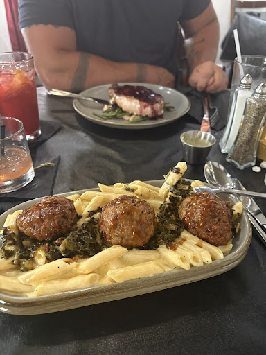 We got two mains 1) Mac&Cheese with Bourbon Glazed meatballs and collard greens 2) Pork Chop with parmesan risotto and something I'm forgetting. Both were seriously excellent. Even to the point where I loved the collard greens, which normally would be just whatever for me.