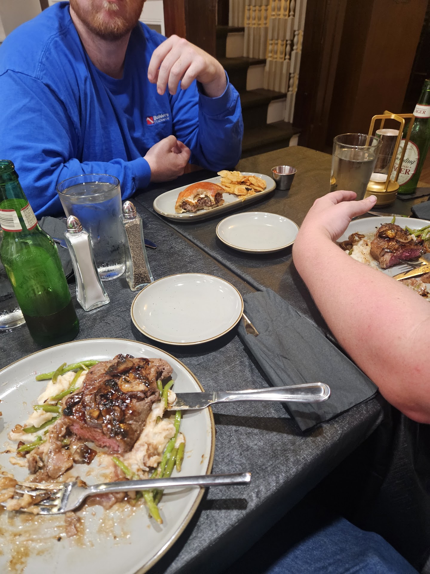 Proof on Washington was a wonderful restaurant experience. We came at the 6 o'clock rush, and the restaurant was packed with a line out the door. Being a new restaurant; i don't know if they were ready for the massive crowd that had piled into and out front of the restaurant, but they handled it like pros. They let everyone know they were going to slow down the rate at which they were letting people in because it was starting to overwhelm the kitchen, they asked for patience. Some people in line left and what a mistake they made. By taking a few min and letting everyone catch up, when we were shown to a table they could provide excellent service (Mary) and delicious food. The crab knots were cooked to perfection and there was plenty of crab in the dip. Mary recommended the steak and a patron leaving the restaurant recommended the bourbon burger. Neither disappointed the steak was a perfect medium rare and the onions and mushrooms with sauce was a great pairing with the mashed potatoes. The burger had just the right blend of sweet and smokey flavor and the chips were crisp. Desert was the decadent ending to the meal 2 people had the cheesecake which was rich and creamy, the pecan pie was sweet and tasty paired with a fessh cup of coffee. Overall the whole meal was delicious and a great experience i have no doubt this place will become a favorite for anyone coming to Berkeley Springs. Just remember to have a little patience and be kind and Proof of Washington will provide a great dining experience. Also the menu is a great read.