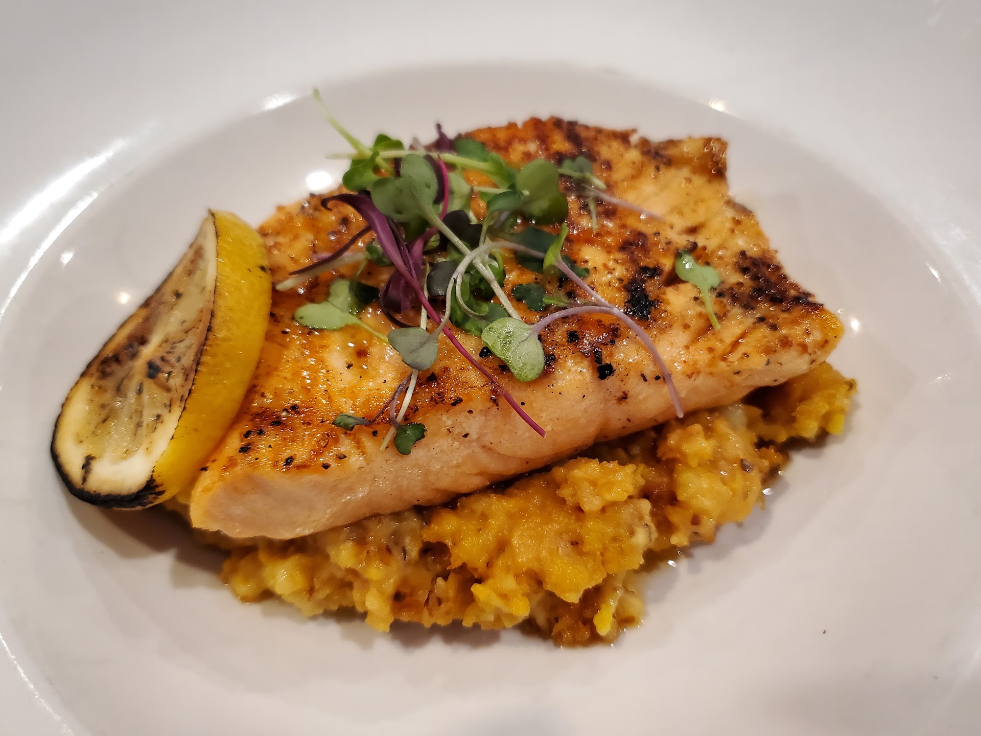 Read moreFood was just ok. I ordered the salmon dinner. The salmon was overcooked and under seasoned. The grits needed some spice/heat to balance out the sweetness of the honey. The presentation was lovely however. The fries were overdone and my sons side of fries took another 5-10 minutes to come out after our meals. We waited a long time for our food, which I understand considering they are a newer restaurant. Our waitress was very nice, but it took a long time to get our check. My husband left with our kids since we drove separately. I made the mistake of paying without looking at the check...they charged me $12 for a teeny tiny side salad for my daughter. My husband's meal was I think $18 and came with a salad. I didn't feel like waiting around longer at this point to try to dispute the bill. We love supporting local, but this place has...