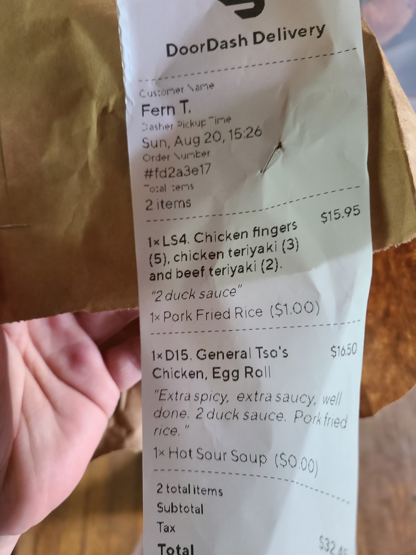 Read moreI had heard good things about this place so I hope my experience was unusual, but it was pretty bad. The rice they used for the fried rice wasnât fully cooked so every piece was crunchy. The dumplings were the smallest Iâve ever seen with no more than a teaspoon of filling in each one and they forgot to include the dipping sauce that always goes with them. The egg roll was saturated with so much oil that it dripped all over me when I bit into it. The sesame chicken was pretty much flavorless compared to others Iâve had. And in the âspecial commentâ section of the ordering website I asked them to include a printed menu but they didnât. I wanted a menu so I could see the descriptions of the menu items, such as what is included in a âdinner specialâ since the website doesnât show that. It turns out I wonât need a print menu after all because I wonât be ordering from them again. I really hope they were having an off night but there were too many issues for me to give them another chance. So...