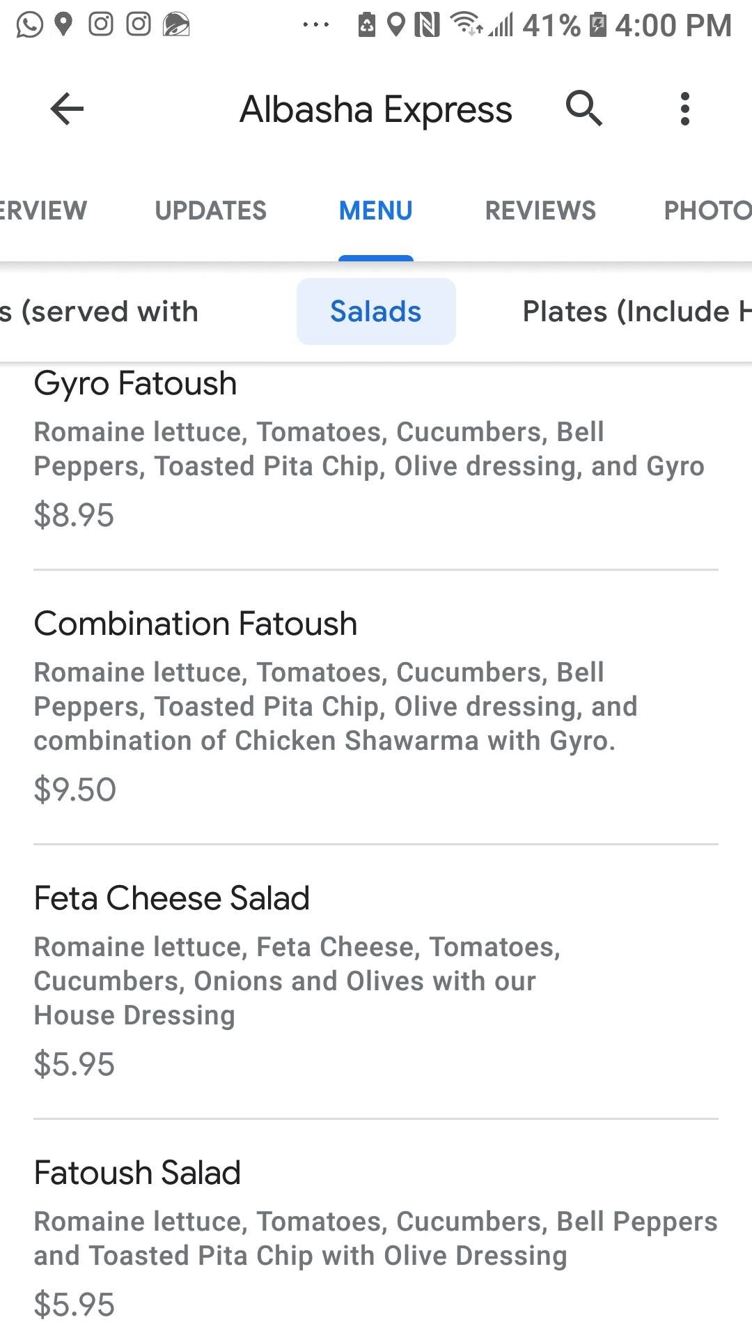 Their food is ok, but their prices on their menu online are deceitful. If you place an order based on the prices on their online menu, you will be surprised with a total that is about $5.00 over what it should be based on their online menu prices. If you bring it to their attention, they pretend that they don't know what you are talking about, if you tell them that you will bring your phone with you to show them their online menu prices, they tell you with an attitude that chicken prices have increased, and so have their prices .if you ask them when they are going to fix their online menu prices, you get an "I will let them know". I had ordered from them about 3-4 times, I liked their food (that's why I didn't give them 1 star), but I had noticed that what I was paying did not match their online menu prices. Even then, when I ordered from them 3-4 times within the last few weeks, I still added a tip. I will no longer give my business to this place. Their online menu is on their listing on Google Maps,. which they are very well aware of, based on how little it took them to respond to...