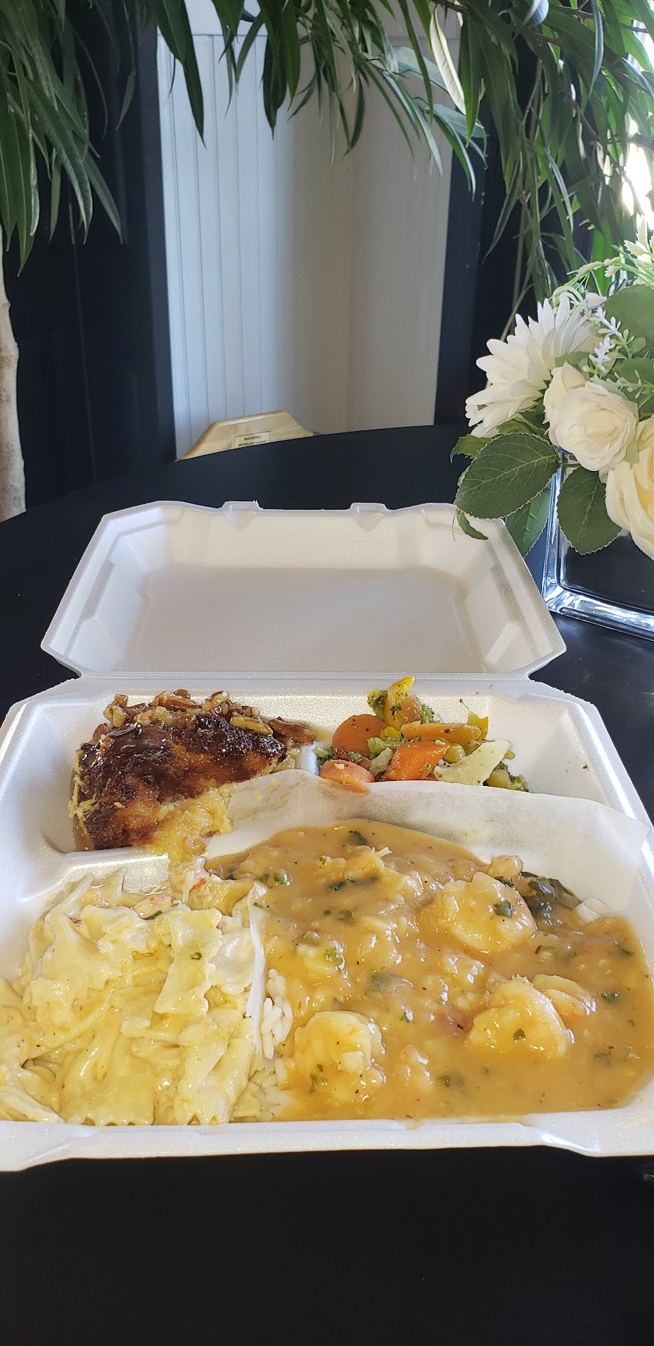 The shrimp creole was good. It was homemade and had a great taste. The bland white rice really stole from the red gravy flavor. I will say again the dish was good. It was so good, I bought some of the same red sauce for the house. These are only small things I thought of while posting this.