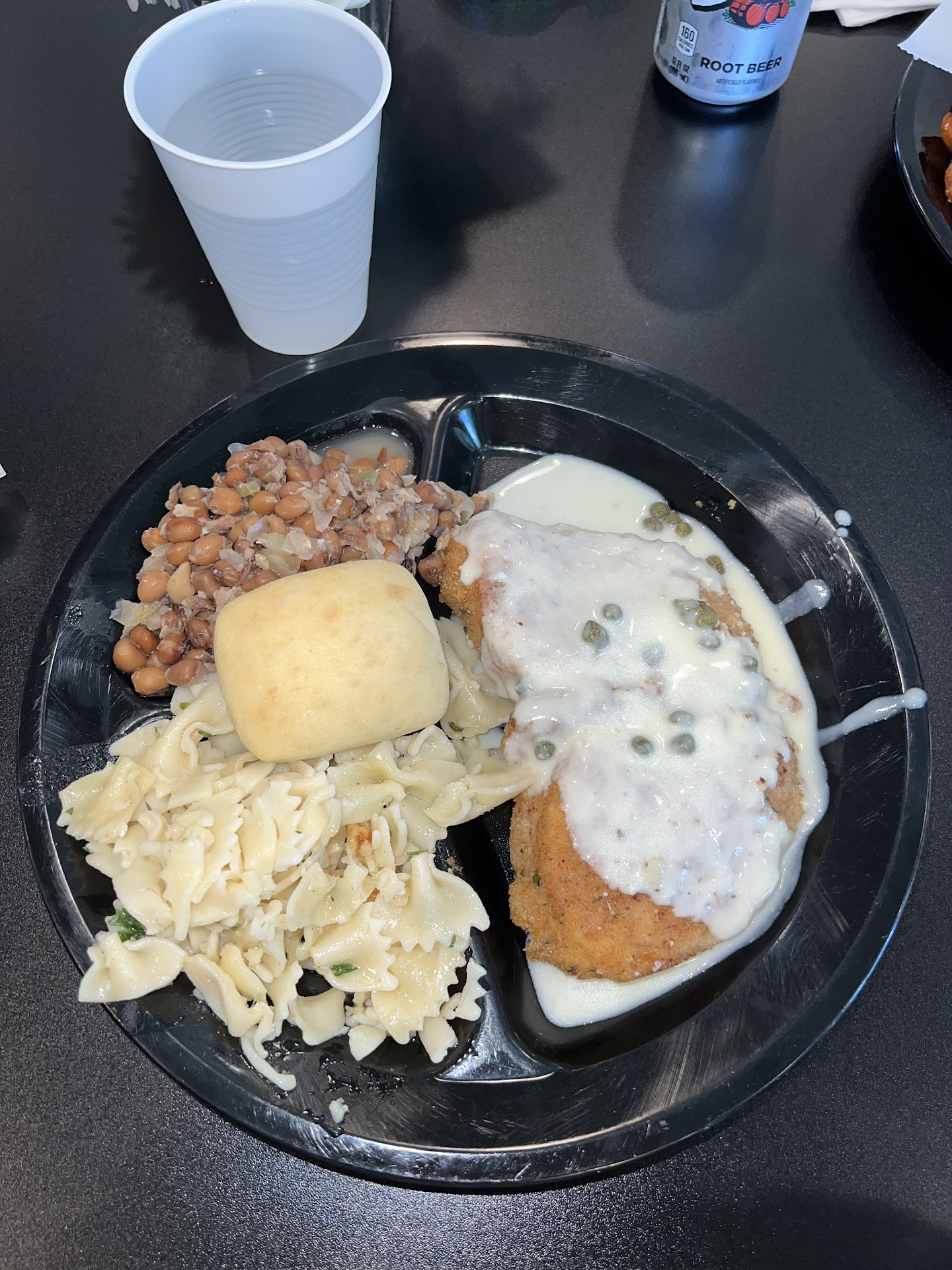 I had the fried fish and fried shrimp. The breading/batter on my shrimp was a little clumped up in a few areas of the shrimp, like they were ganged up in the fry basket, but the texture and flavor was very good. The fish had a corn meal batter which was crispy and seasoned just right. I liked the two different batters, corn meal for the fish, flour for the shrimp. My sides were cabbage which had greens and sausage in it. The cabbage was fresh and not over done. The macaroni and cheese was obviously homemade with a Béchamel sauce, and spiral noodles. I generally always get the tossed Green salad, which is in a creamy vinaigrette. I added a little salt for my taste.