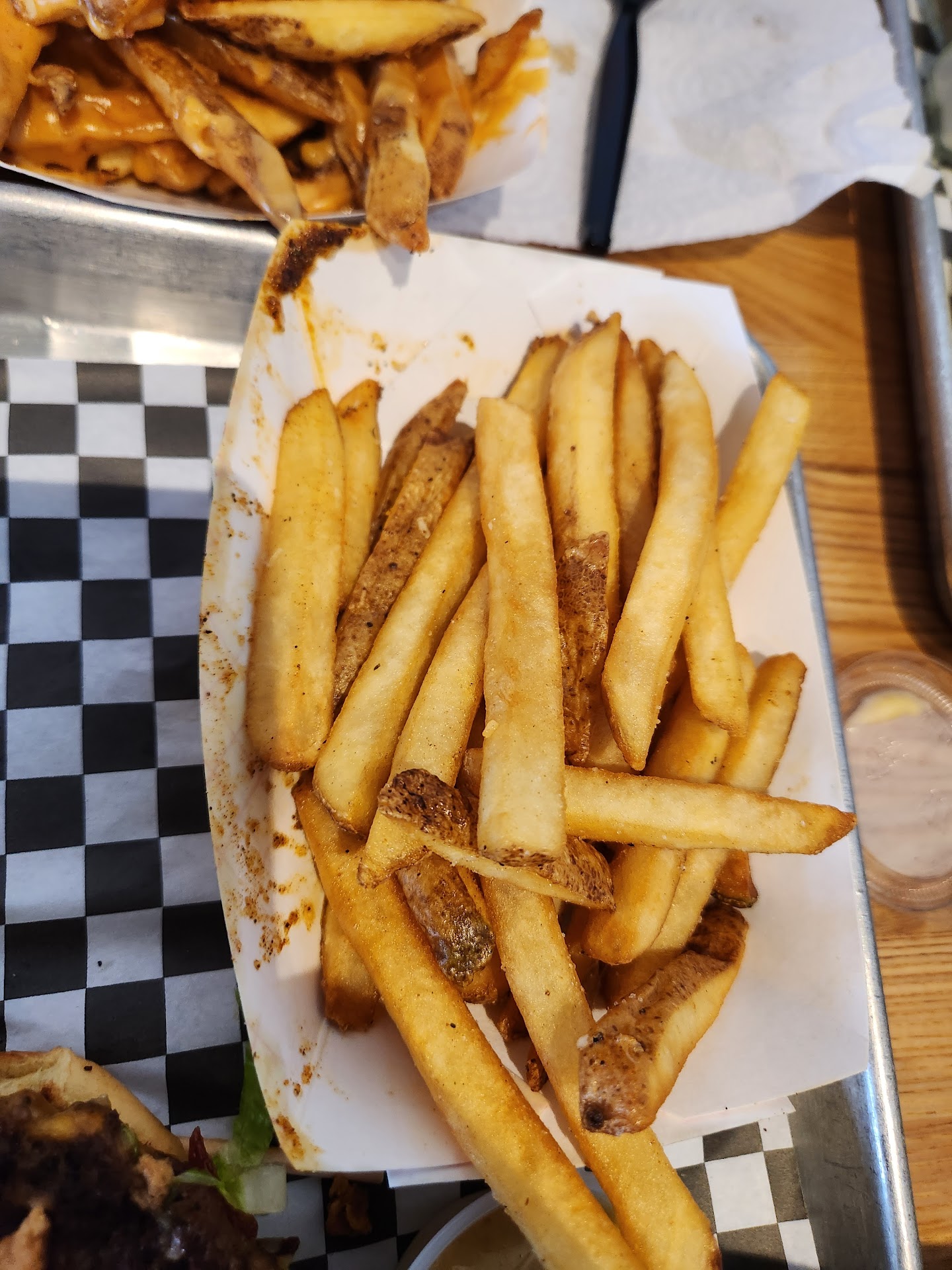 Don't Do It! I stopped by for the first time to grab a quick lunch. The cashier was very polite and took my order quickly. I ordered two small burgers and chorizo fries. After receiving my order I noticed that the chorizo fries didn't have chorizo and thought I was giving someones order by mistake. When I asked the cashier I was told that the chorizo was "blended into the cheese sauce". It tasted like a thin salty cheese sauce on top of fries honestly. Didn't want to give it much thought , so I simply smiled , said that I understood, then ordered and paid for the plain salted fries. After placing the order the cashier and young female kitchen staff had a quick discussion about my order which I found odd. Since I didn't complain or want anything for free. I was then brought out a container that was obviously dirty and covered with debris and red-ish greas/oil.( pics below)The fries were very oily as well and looked as if they'd been refried in the grease. Not sure why any of that would be there if it was just supposed to be plain fries and it felt really intentional. I wouldn't be comfortable giving that someone to actually eat. I found it insulting and disgusting, so I quickly and quietly finished my soda and threw all the food in the trash. I suppose only "some" paying customers receive decent food here. I definitely won't be back, nor do I recommend.