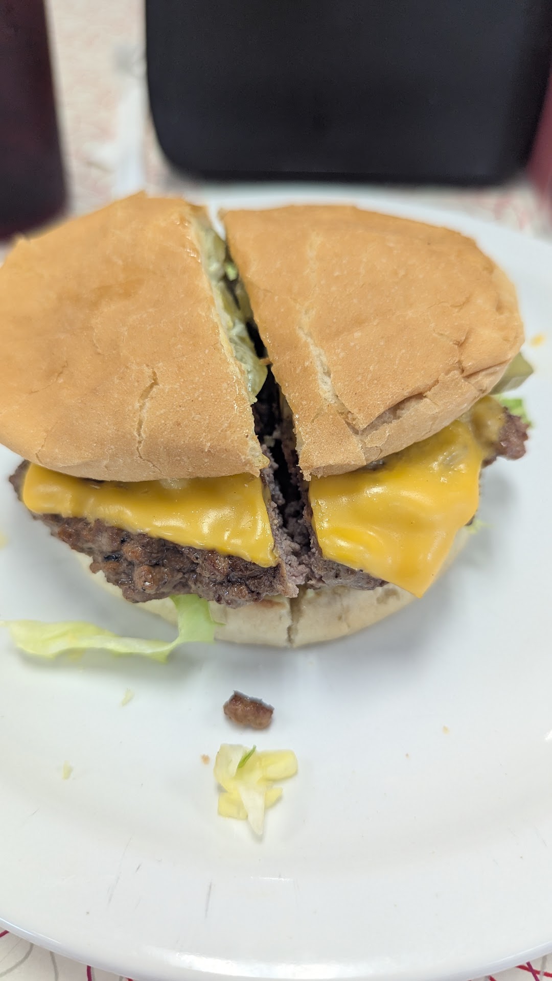 Read moreI'm giving this a 2 out of 5 because the only really good thing was the burgers. The fries had obviously already been cooked and then just reheated in the hot oil, my mother ordered grilled onions with her burger and they came about 5 minutes after her burger was brought which I thought was kind of odd, I mean why not just keep her burger back there the extra 5 minutes instead of bringing something to her table she has to wait to eat because she's still waiting on you to correctly fulfill the order??? Not to mention, after our food was brought our waitress was never to be seen again, did not ask us how our food was, if she could get us anything, refills, nothing. I just went up to the front and paid and got a box myself, which is fine, but I felt like the waitress should have at least asked us at some point how everything was or should have been more friendly. It seemed like she was annoyed she even had to be a waitress when she was waiting on us.