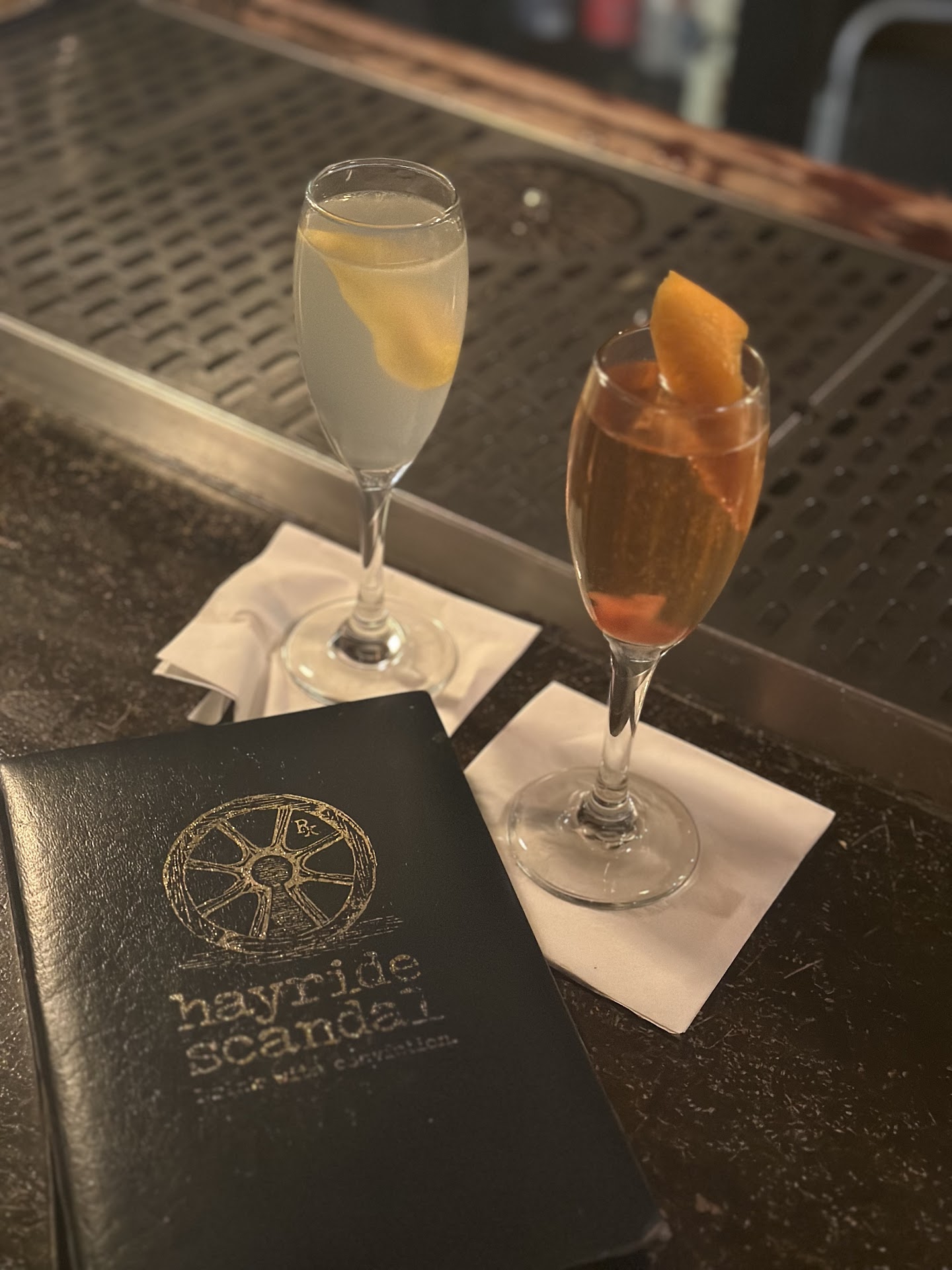 Read moreMy wife and i were surprised at the relatively dissapointing nightlife in downtown Baton Rouge. As we drove, she searched for a speakeasy. We came upon Hayride Scandal. Parking was easy, as we came upon the location nestled alongside a Hooters. Tall wooden doors open to a very nicely decored bar room. Darkly tone wood accents with bar or lounge seating. We choose the bar, as it is my habit to strike up conversations with the mixologists and learn about the establishment. 5 stars go to Brian, who was willing to engage my questions and then 3 mixology challenges. Classic black & white movies play on monitors over the bar tv. Fellow bar patrons were excellent conversation and an opportunity to wish them a happy birthday. Brian and Hayride Scandal made up for a great Saturday evening. Highly recommend this...