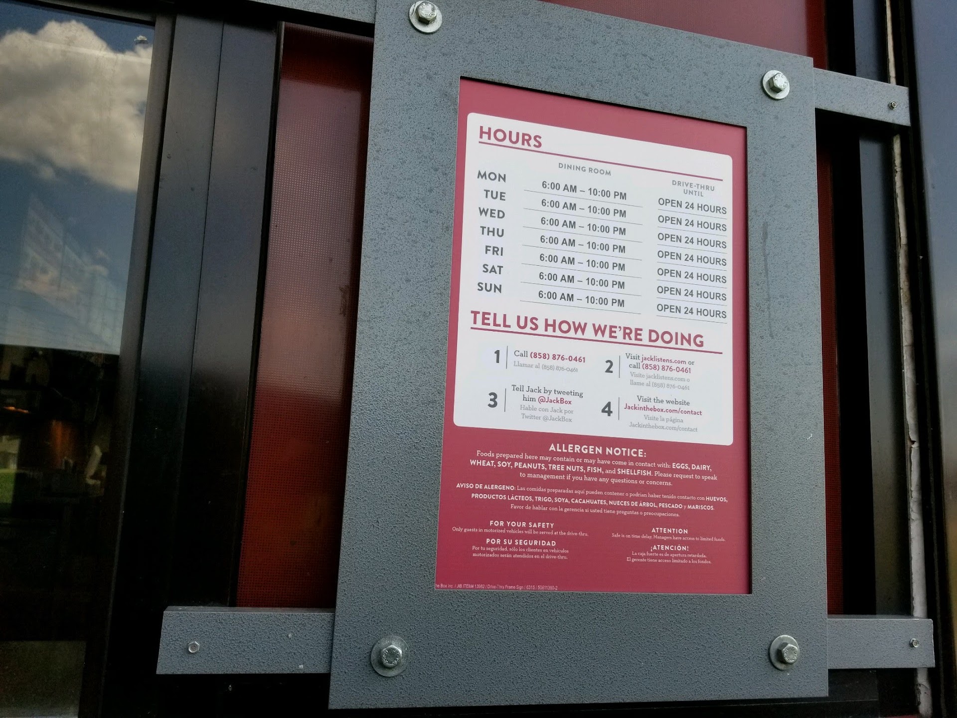 Read moreSo... My girlfriend and I went there after a night out. Let it be known, I've been to this location several times and never had a problem. Ever. In the past, I would've rated this place 3 or 4 stars but this past time, the disappointment was just too unforgiving. Upon arriving, there was a decent line. Nothing out of the ordinary. We get to the call box and it's broken with a sign over it saying to drive through (which wasn't clear). After sitting there for 30 MINUTES, we get up to the window and order. The very first thing I say is, "so what are y'all giving out for free because of this?" All they could do was laugh and said, "NOTHING." Really? Nothing? They explained that they have a sign up that says to drive on through and that its "not their fault" the call box isn't working. Wow... THEIR CALLBOX not working is not THEIR FAULT? THEIR as in Jack in the Box, obviously... So... The call box is not working and they have a sign up saying to drive on through. But wait... THERE IS ONLY ONE LANE! NO WAY AROUND! So EVERYONE is stuck there no matter what when a person orders at the window, and they can't give out SOMETHING free for the inconvenience? Pitiful... Like Jack in the Box is going to give them money for ever piece of food that they could've given out for free. Terrible customer service. I would've driven through if I could've and went to the BK across the street. Won't be bothering with these crap-shoots anymore. Take your...