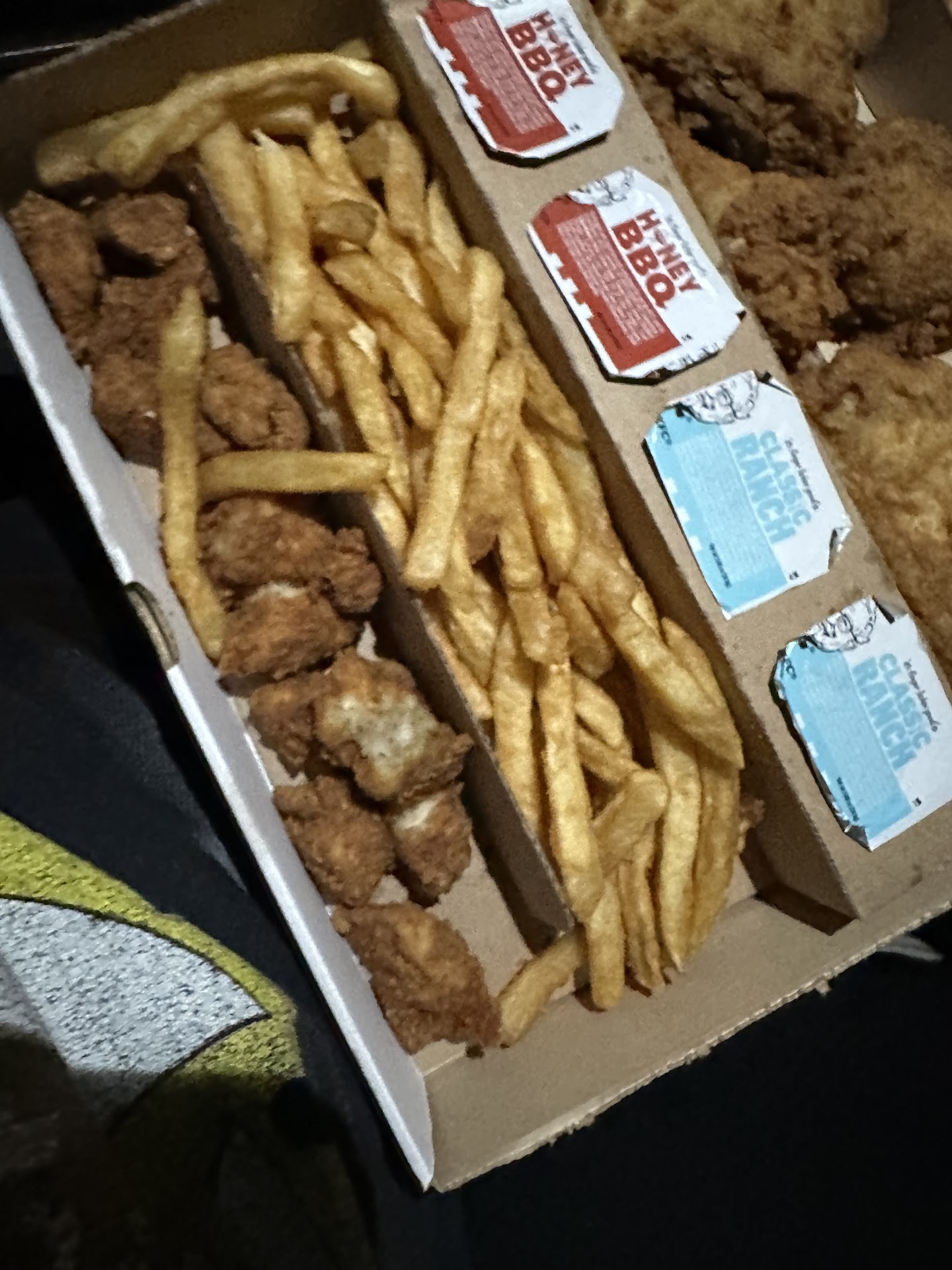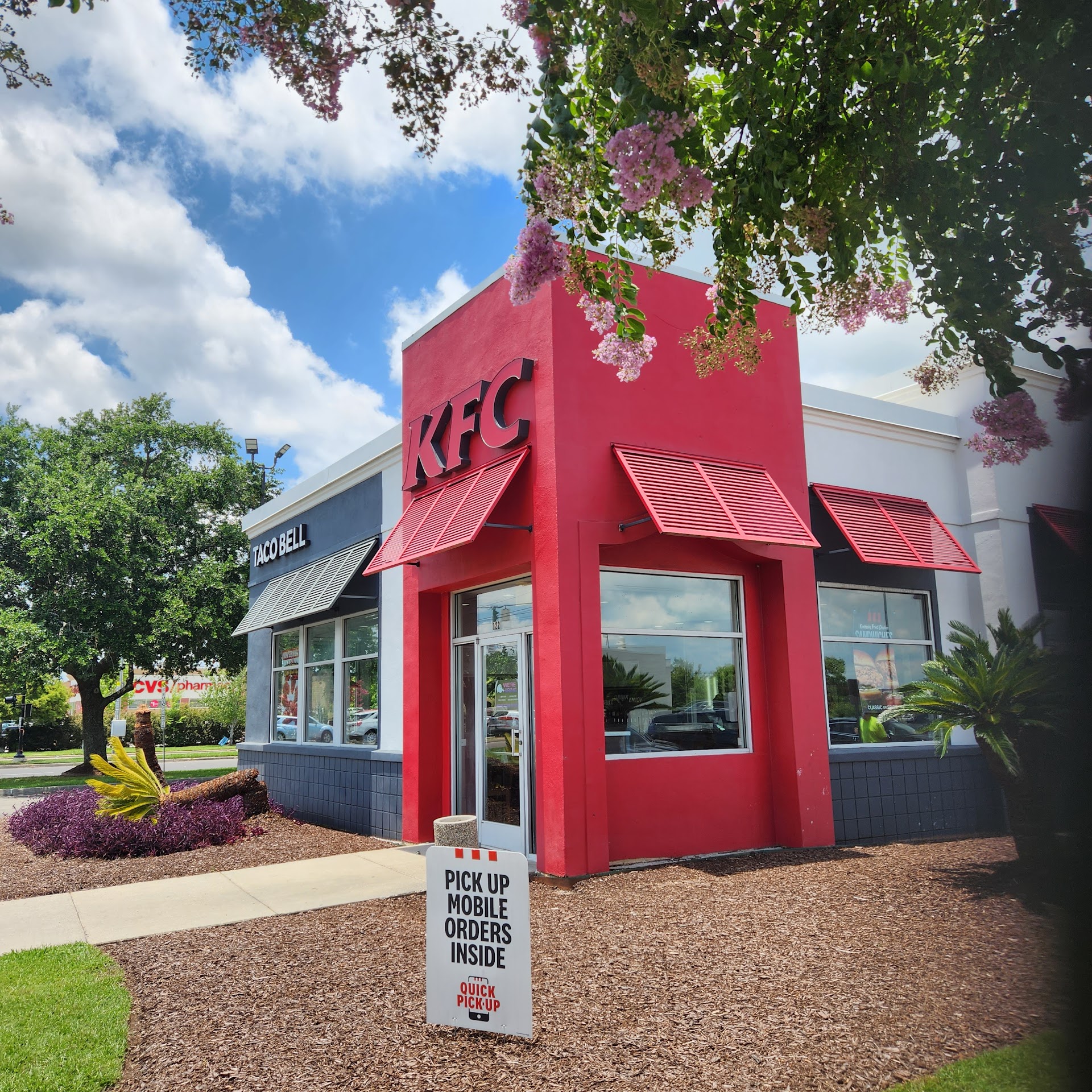 We stopped by for a quick lunch before shopping for summer clothes. I ordered the regular chicken strips, 4 piece, with mashed potatoes and a biscuit. I tried the pink lemonade. They also had extra crispy chicken strips and a new chicken sandwich but we saved that for a later time. The regular chicken strips were hot straight out of the fryer. They were out of the sweet and sour sauce so we tried KFC's house sauce! It was reminiscent of my favorite sweet and sour sauce! It was delicious!! I will definitely order the sauce again and the strips! I actually prefer these soft lightly breaded strips to Canes! The potatoes were satisfying and the biscuit hit the spot! Our only complaint was my partners' fries were limp and tasted of old grease. I couldn't eat but three of the strips with the rest of my meal, but my partner ate all four!! The employees were fast and friendly. One asked how my pink lemonade was because the bottle was almost empty and she wanted to make sure my drink was not full of carbonation with no 🍋 lemonade!! I have gotten drinks before like that and the taste is awful! I appreciated her inquiring about my drink, most employees would have said nothing. I do recommend the pink lemonade! It is delicious! Hours later I added ice to my cup and am still drinking it!! We ate so fast I forgot to take pictures of our meal. I do like this KFC and would recommend it to everyone looking for a quick meal to go or now you can dine - in! Drive thru window was fast and efficient!! Take out and delivery are available! I rated this restaurant a 4 star!! Work needs to be done on the...