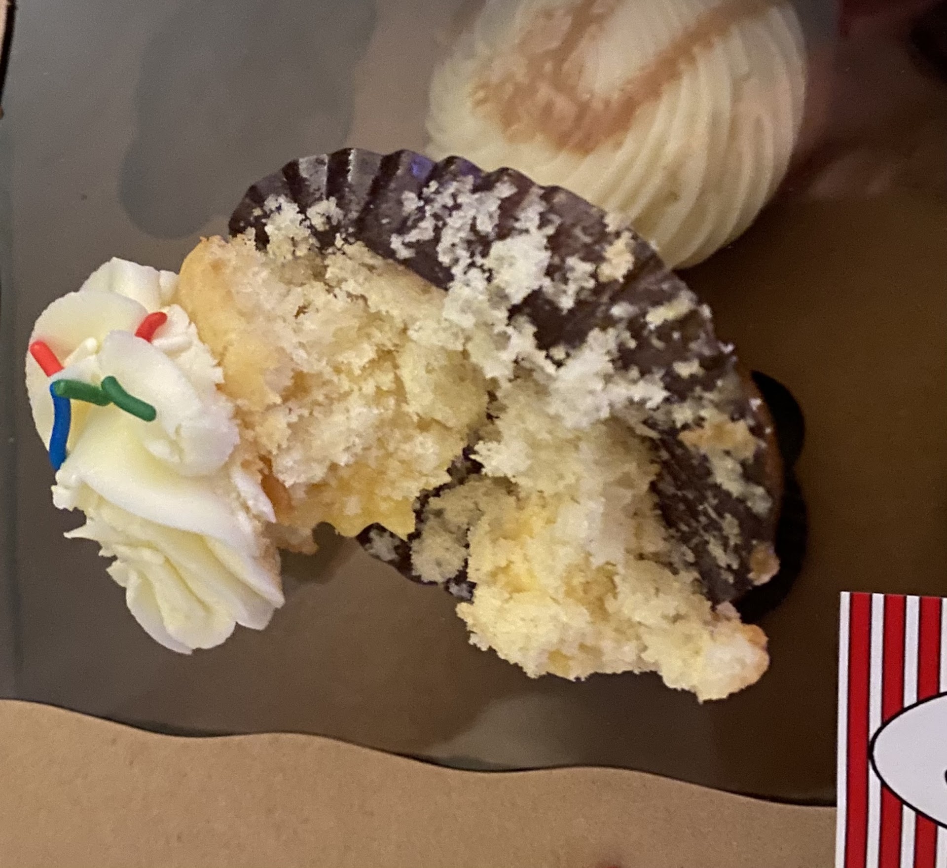Staying in the area of texture, I’m sorry to say that the cupcakes stick to the sides of the wrapper there by crumbling the cupcake. I’ve included a couple of pictures for a visual.