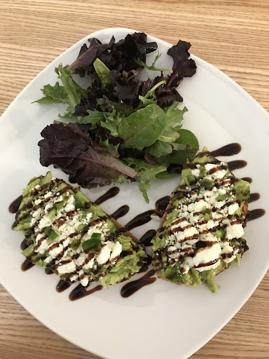 We also both ordered the avocado toast. The presentation and taste both excellent! It came with a small aide salad as well. Dressed perfect with a balsamic dressing. Made me want to dive right in. In addition, they have wooden forks instead of plastic. I love that.