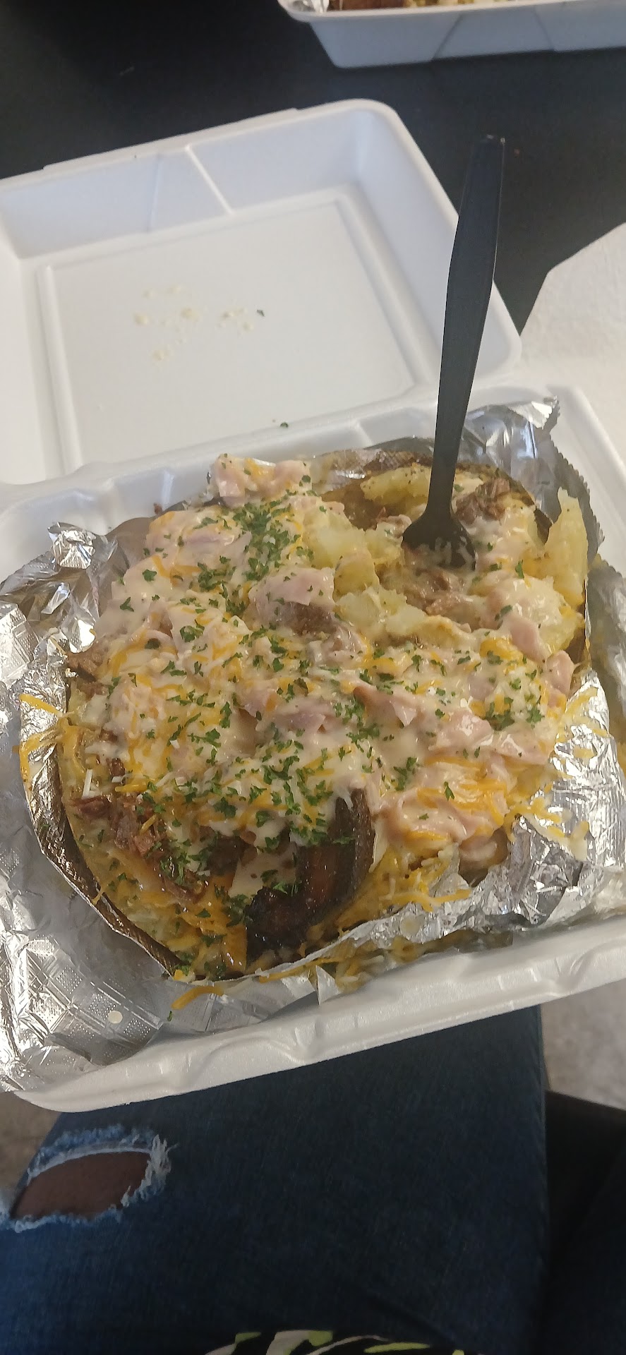 We both ordered stuffed baked potatoes, and let me say, THEY DID NOT DISAPPOINT!! The preparation, the size of the potatoes, and the taste definitely deserve 5 ๐s!! We will definitely return to try more of their food and...