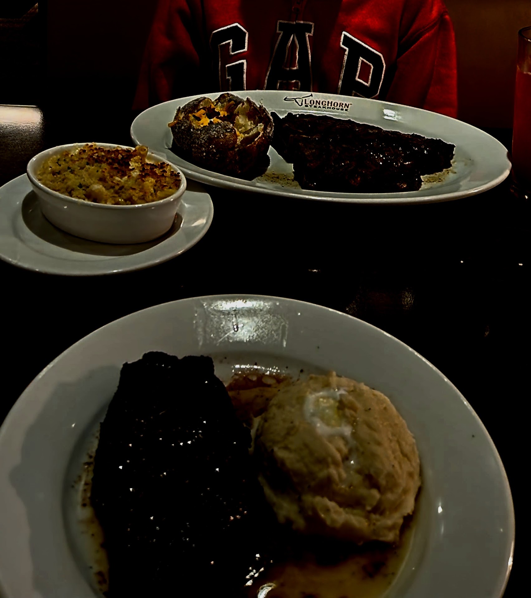 Read moreI've always been a fan of Longhorn mainly due to the fact that you can get a quality cut of steak for an affordable price - and the parmesan crust seals the deal. Most locations I've visited across the country have great service as well. However, on my first visit to this new location this week, it has none of those things going for it. To set the table, I ordered online take out - it's finally available after several weeks of being open, which is understandable. I came in 8 minutes after my promised ready time due to the lovely thing that is BR traffic. Walked in, the hostess was nice enough I guess - though she would've gotten fired at Chick Fil A or Raising Cane's - and she told me to go to the bar. There was a customer in front of me being helped by an employee. It took a couple of minutes because he seemed to be a little confused by the customer's requests and how to do a takeout transaction. Once they finished up, I assumed he'd greet me and ask me for my details. Nope. Just walked off. I stood there for over 10 minutes while not one employee acknowledged me. There were only two customers in the bar and no bartender. Finally someone came, asked if I'd been help, and said she'd be right there. She was nice and good at her job - the only upside of the evening. Got home and the shrimp appetizer was soggy and lacked flavor, the mashed potatoes were cold, and the steak was well done (ordered medium well) and HAD to have been one of, if not the most, toughest pieces of meat I've ever had to cut. It was like trying to cut a leather belt with plastic utensils...and I was using a fork and steak knife. The parmesan crust was great, but it was overshadowed by the tough, rubbery, low quality, over cooked steak. AND TO TOP IT ALL OFF, about 30 minutes after finishing, I found myself feeling TERRIBLE and in my bathroom VOMITING. Terrible night. Terrible place. Longhorn went from being one of my favorite chains to being something I won't touch with a 10 ft pole. I MAY go to another location some time in the distant future, but I highly doubt I'll ever visit this one again, which is very sad because I anticipated its arrival for nearly a year. Very...