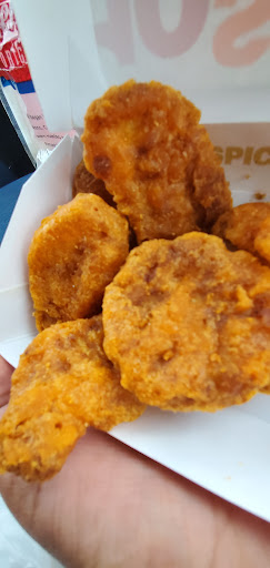 A few minutes later we received the food. When my daughter looked in the bag we had one spicy nugget and one regular nugget. My daughter tried to eat the spicy nuggets but they were cold and looked old. I called the store because I didn't have time to turn around. I was promised that I could pick-up the same meal that I ordered the next day at no cost. Went there the next day to pick-up my food and I was told the manager that told me that was off and they had no way of verifying what I was telling them.